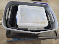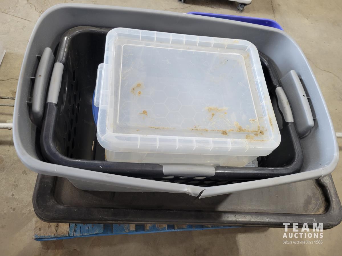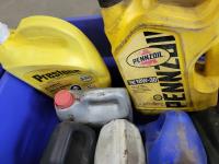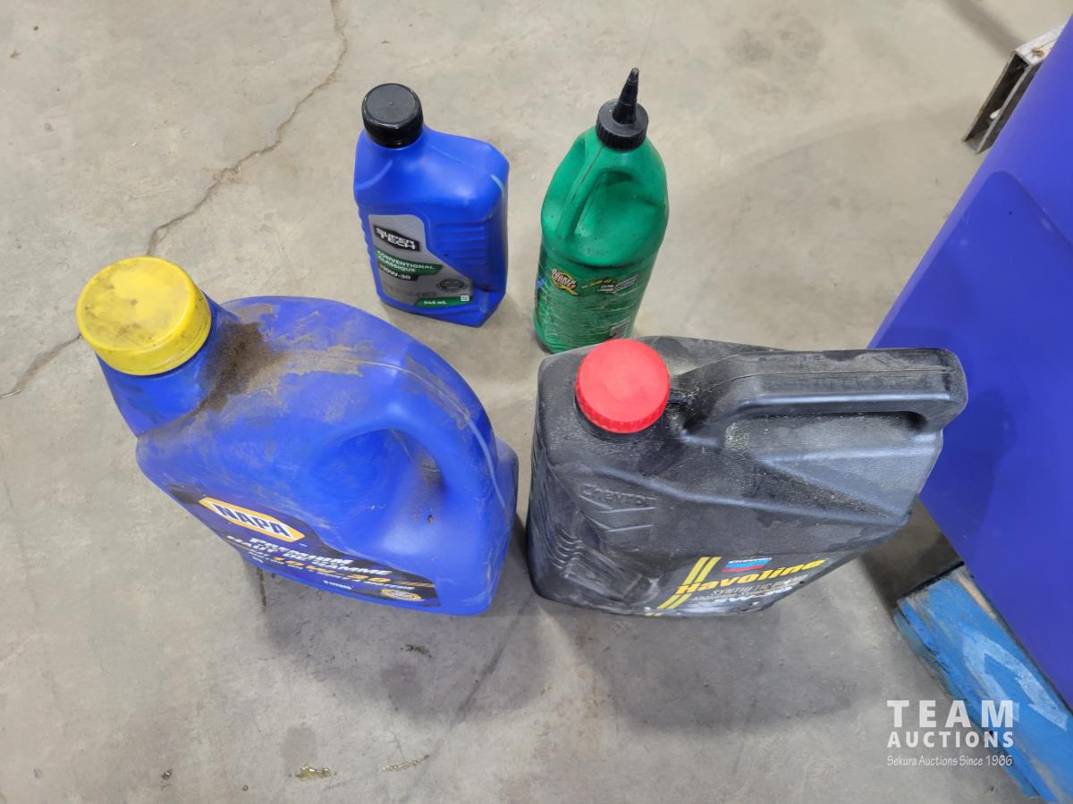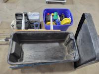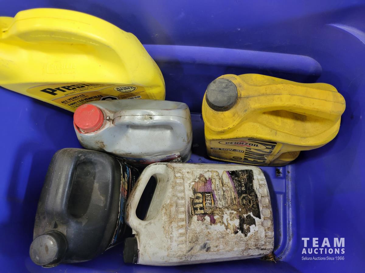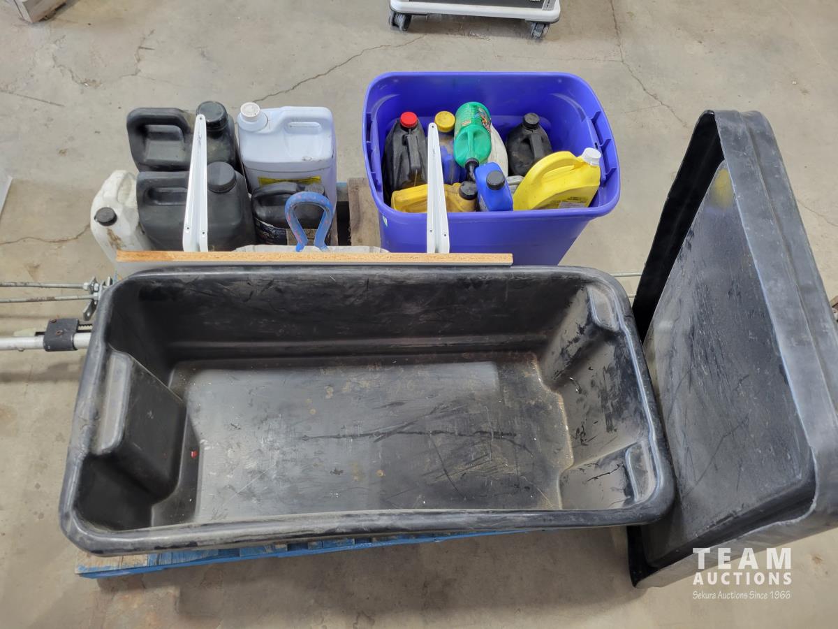 1388 Qty of Shop Fluids, Large Dust Pan and Empty Totes