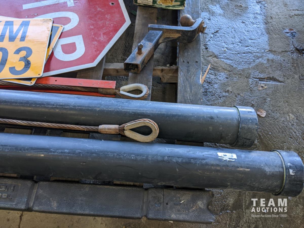 4 ft level, (2) storage tubes, lifting sling, qty of signs, hitch, Victor regulator