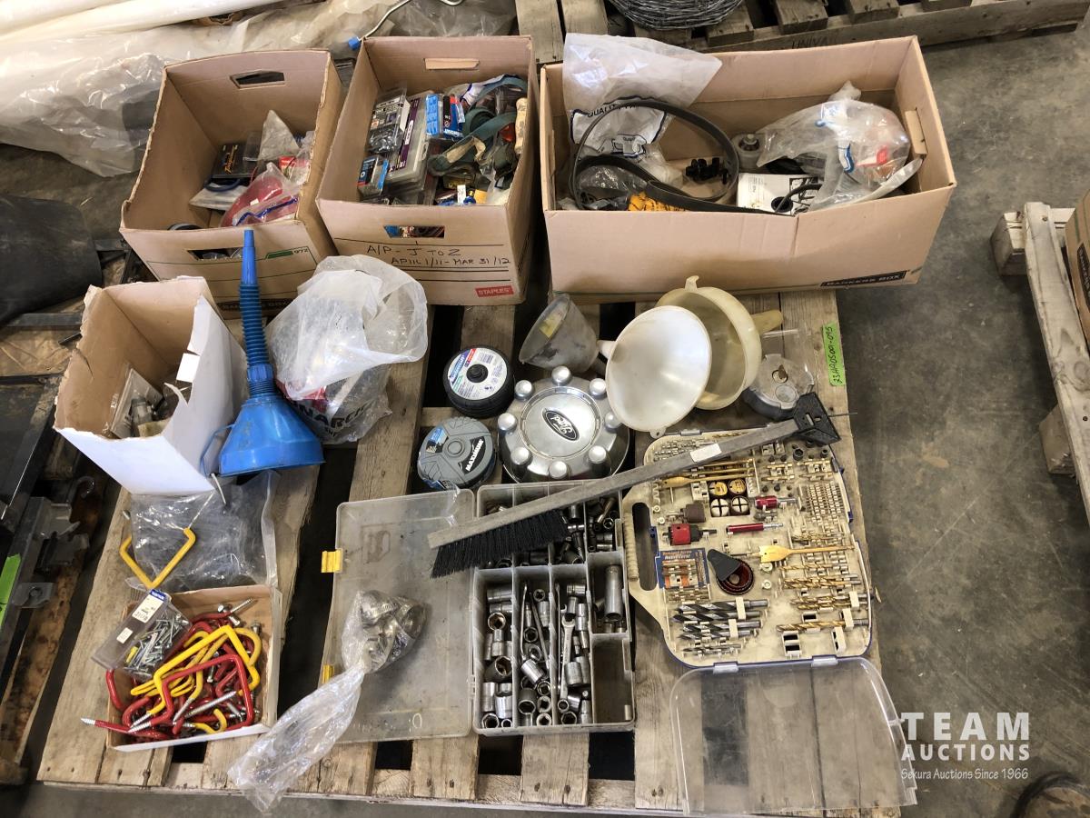 Drill bit sets, sockets, 4.5 inch angle grinder discs, pipe clamps, funnels, miscellaneous hardware