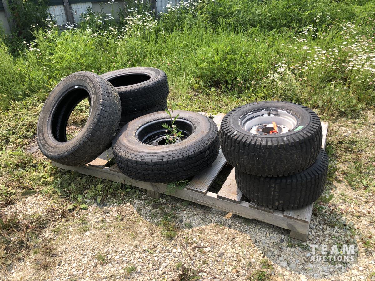 (2) steel rims and tires 23 x 9.50-12, steel rims and tires st235/80R16 and (3) tires p235/65R17