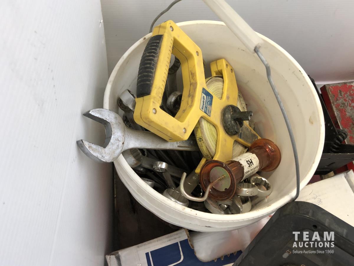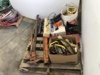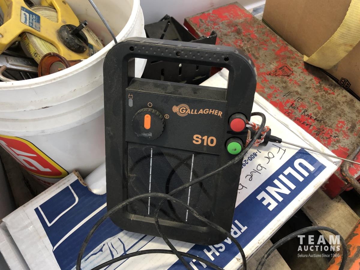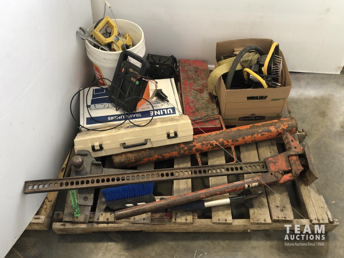 Jack-all, post pounder, Gallagher electric fence solar charger, o-ring kit, assorted had tools, box of trash liners, Motorola CB radio, 3/4 inch drive sockets