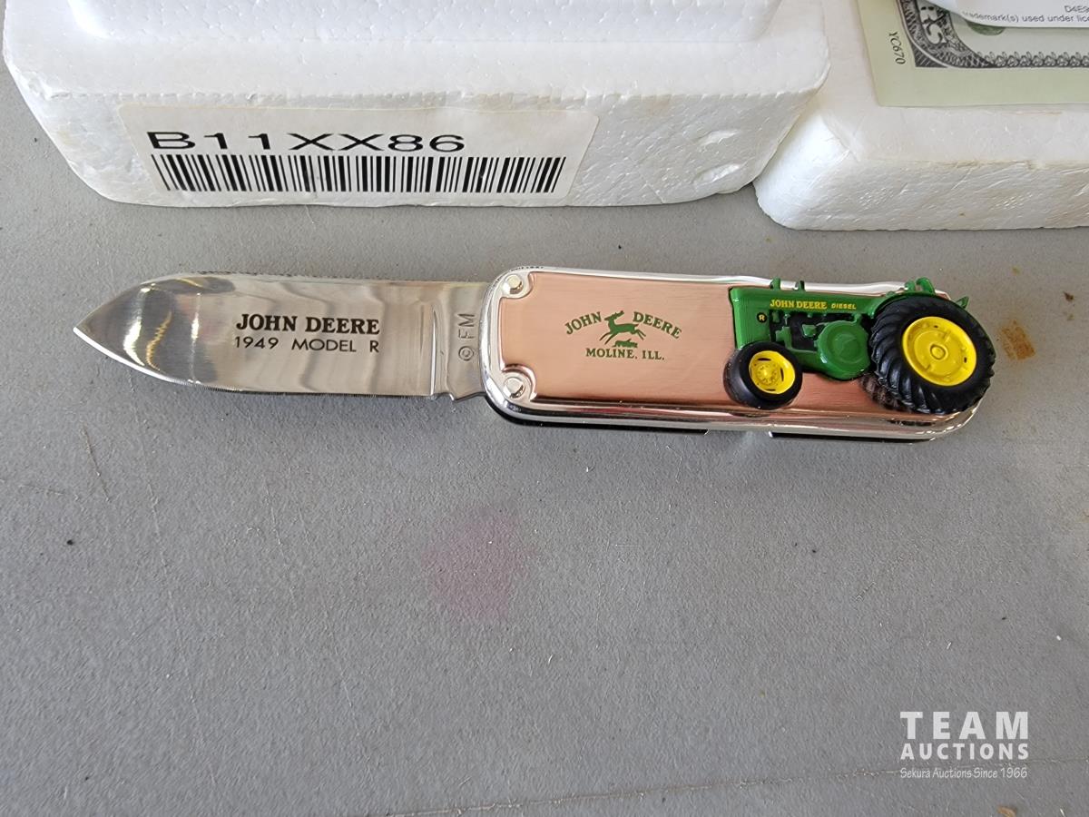 1616 Supertest Gas Pump Drink Dispenser and Official John Deere Model A Tractor Collection Knife