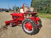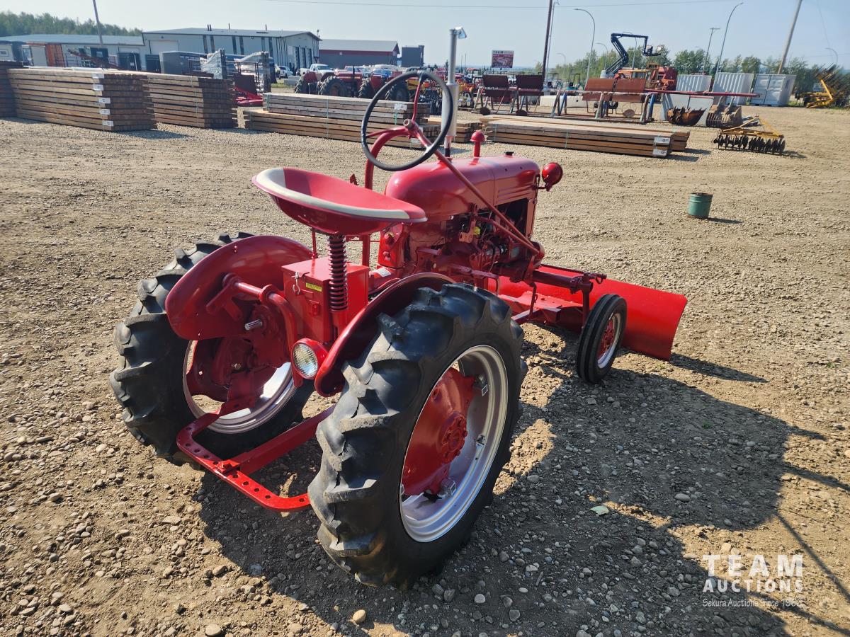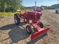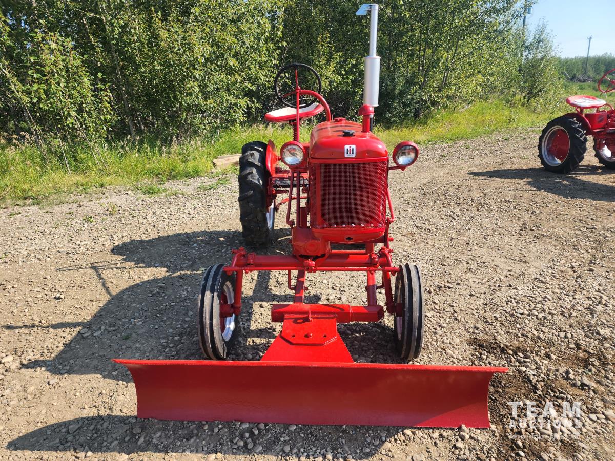 International Harvester 1.0L, 4 cylinder gasoline engine, 3 speed transmission, manual steering, 540 PTO, front blade, 4.00-12 front tires, 9.5-24 rear tires