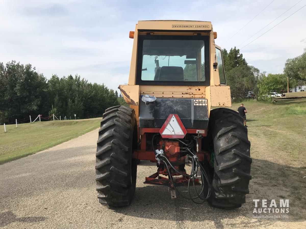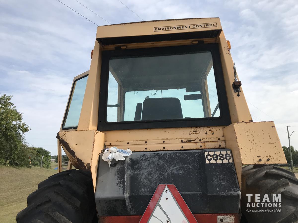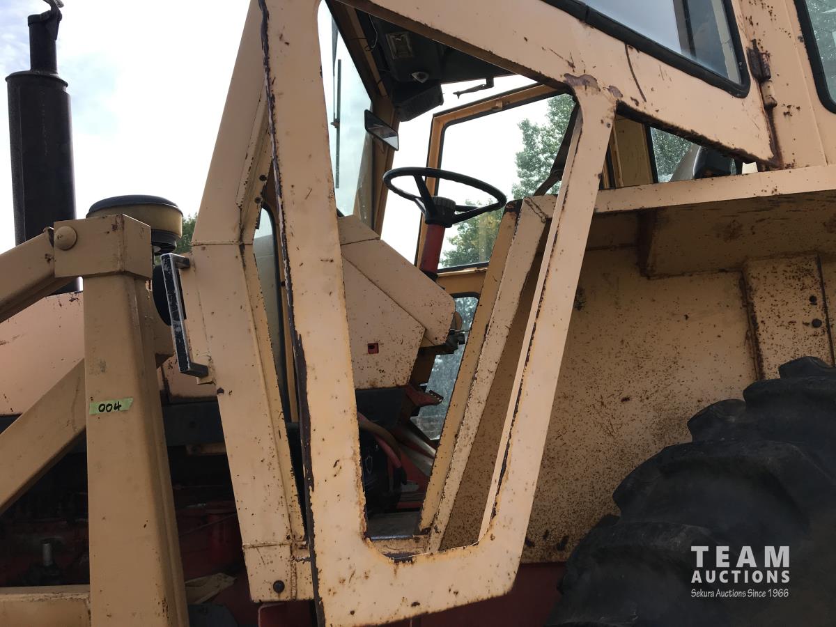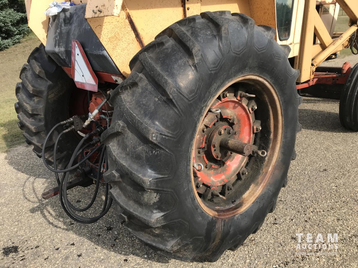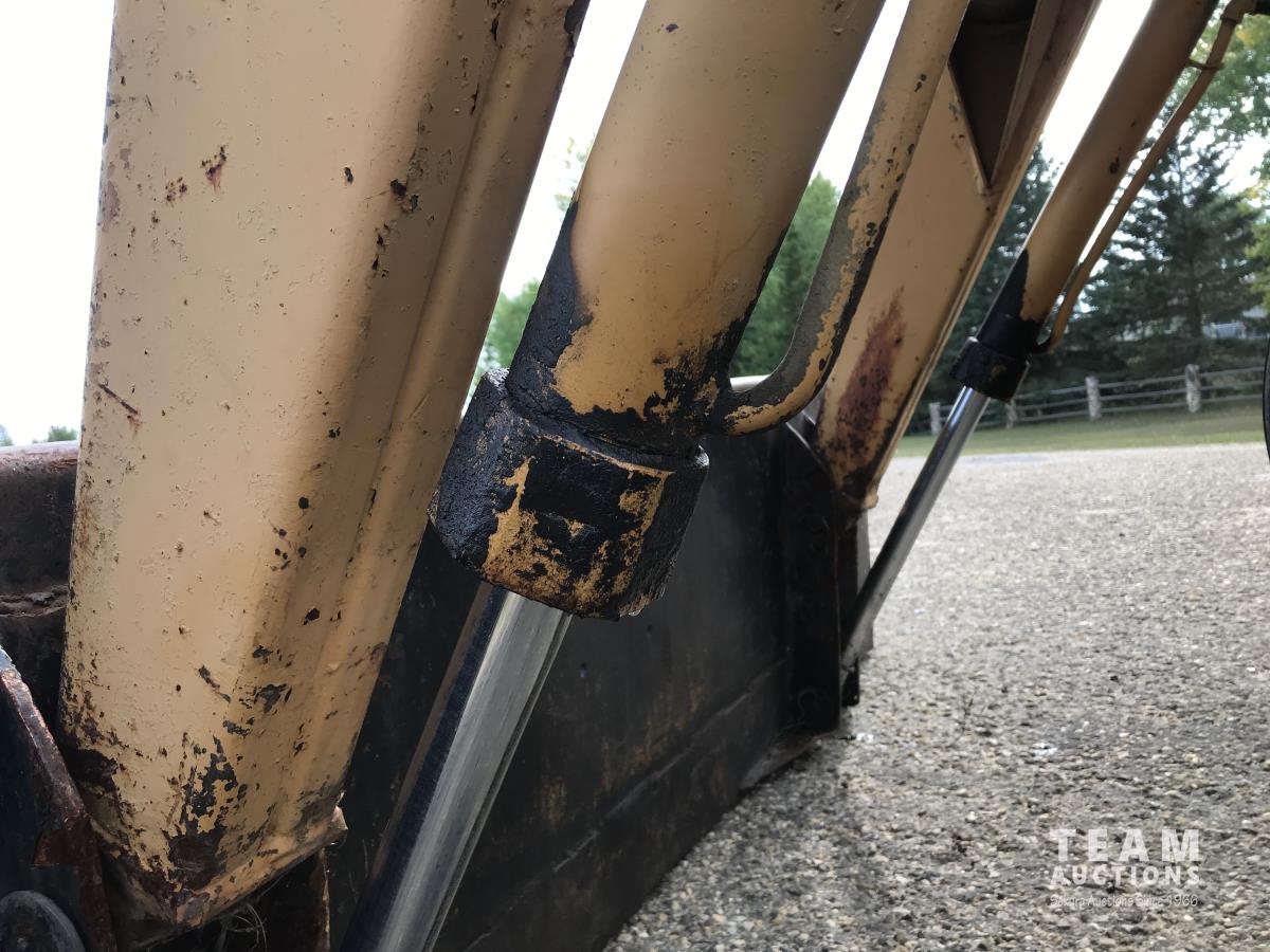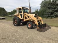Loader, 84 inch bucket, Case 6 cylinder diesel engine, 8 speed manual transmission, cab, 540/1000 PTO, 2 rear hydraulic outlets, 10.00-16 front tires, 18.4-34 rear tires