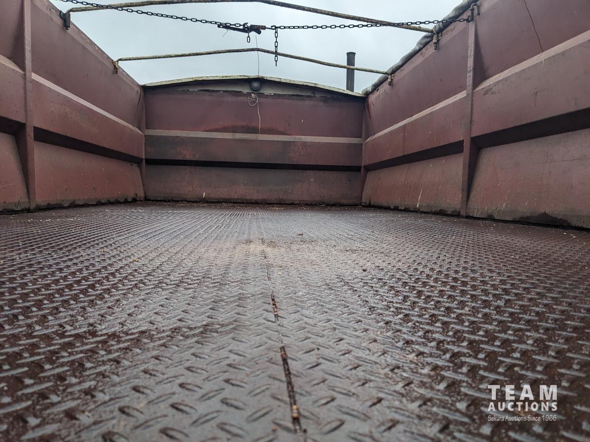 International DT-466 6 cylinder diesel engine, automatic transmission, twin cylinder hoist, 18 ft steel box, roll tarp, spring suspension, 11R22.5 front tires