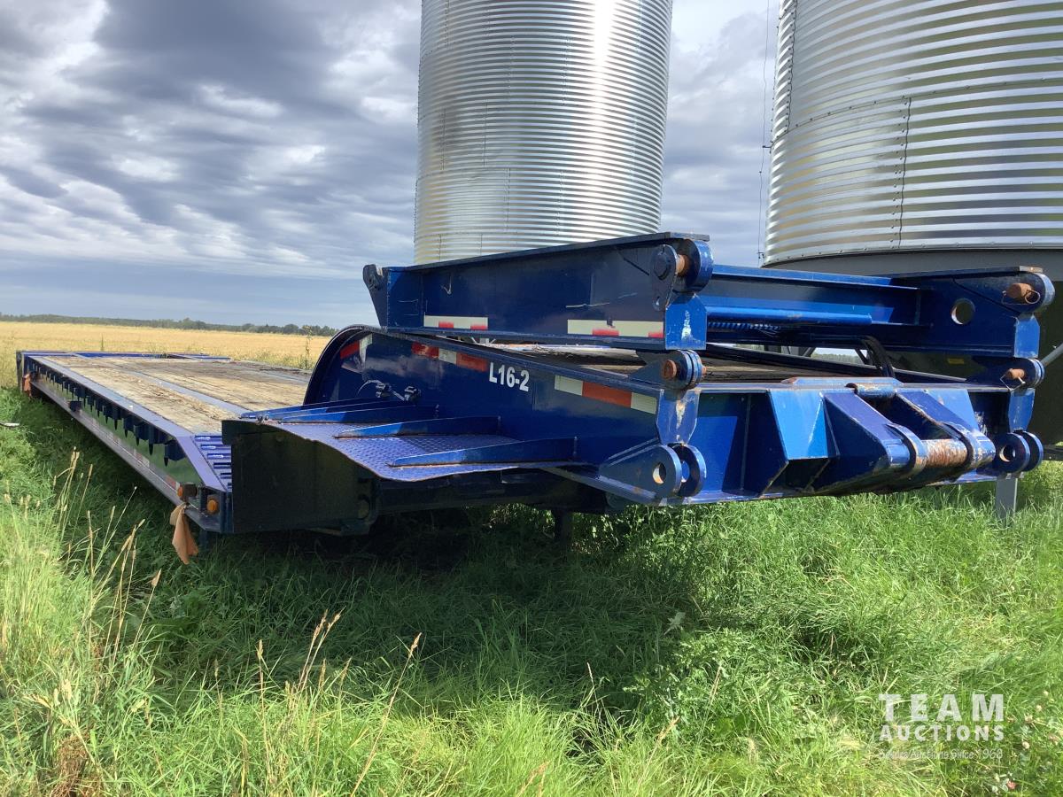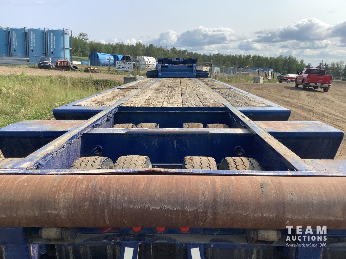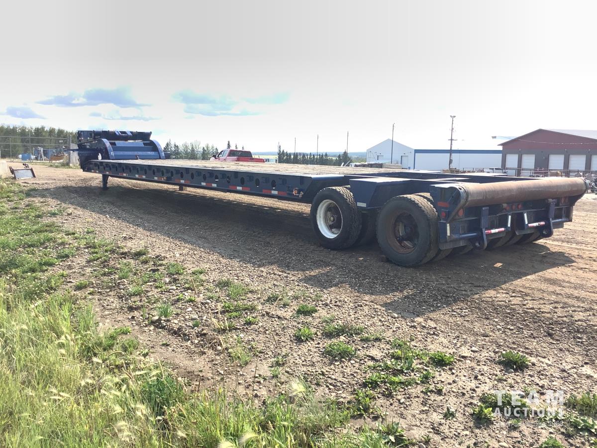 Mechanical detachable neck, flip neck extension for tandem jeep, 10-1/2 wide deck, 48 ft long main deck, rear live roll and (2) air lift live kicker rolls, pin pockets, wide load lights, 275/70R22.5 tires