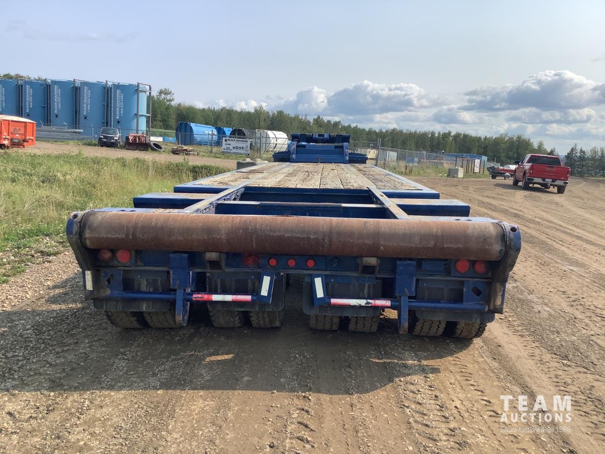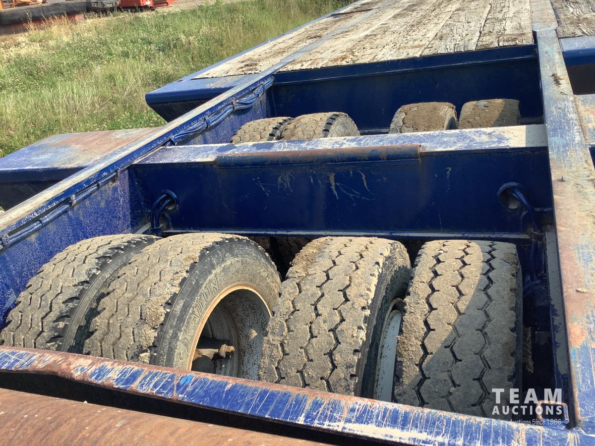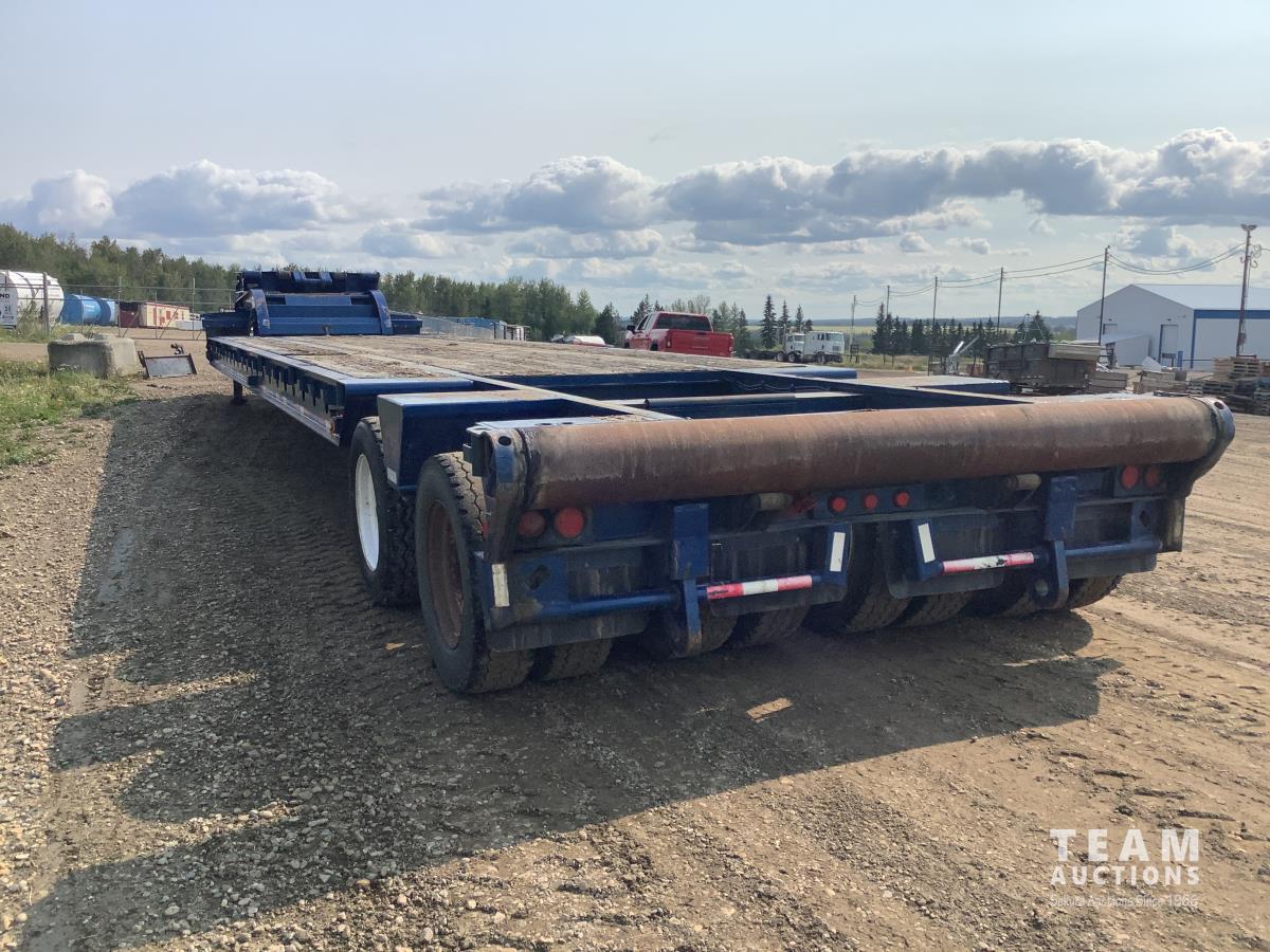 Mechanical detachable neck, flip neck extension for tandem jeep, 10-1/2 wide deck, 48 ft long main deck, rear live roll and (2) air lift live kicker rolls, pin pockets, wide load lights, 275/70R22.5 tires