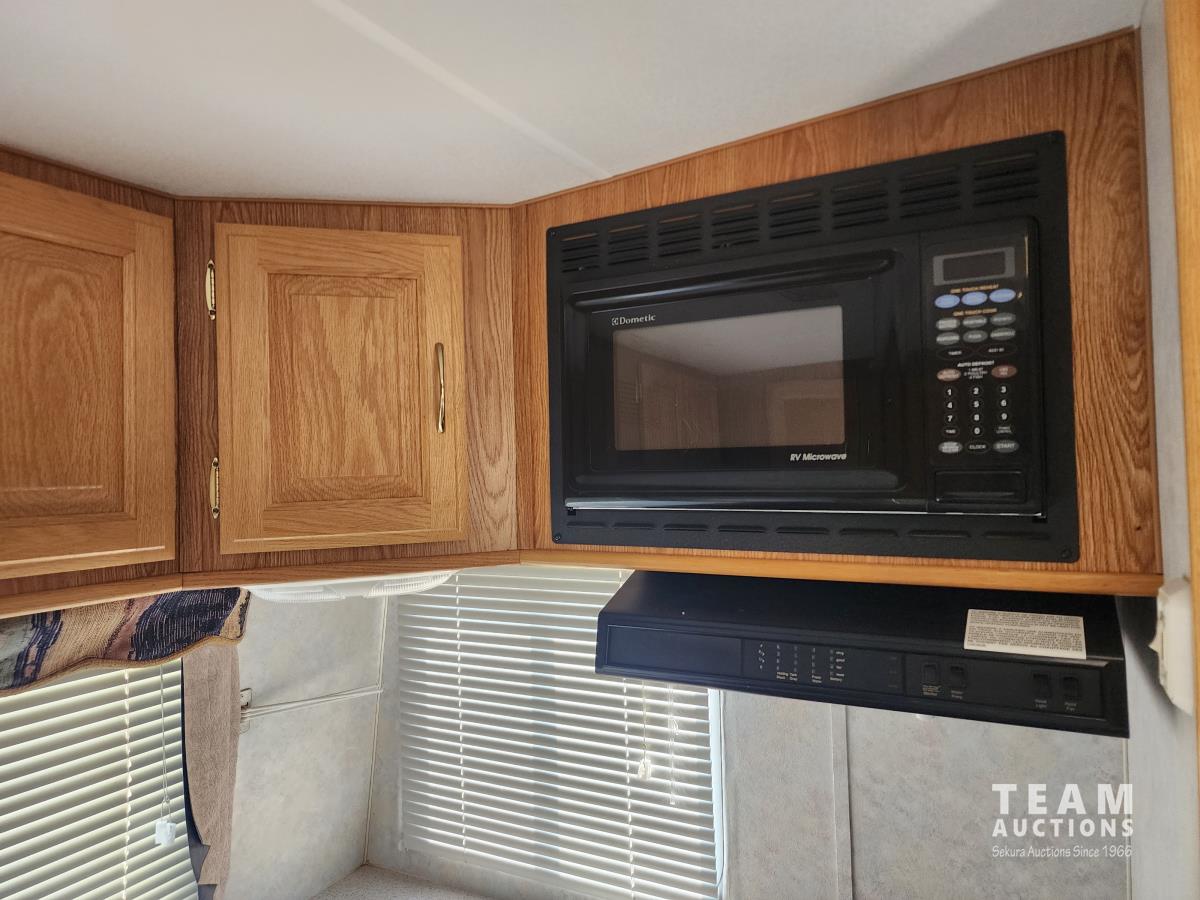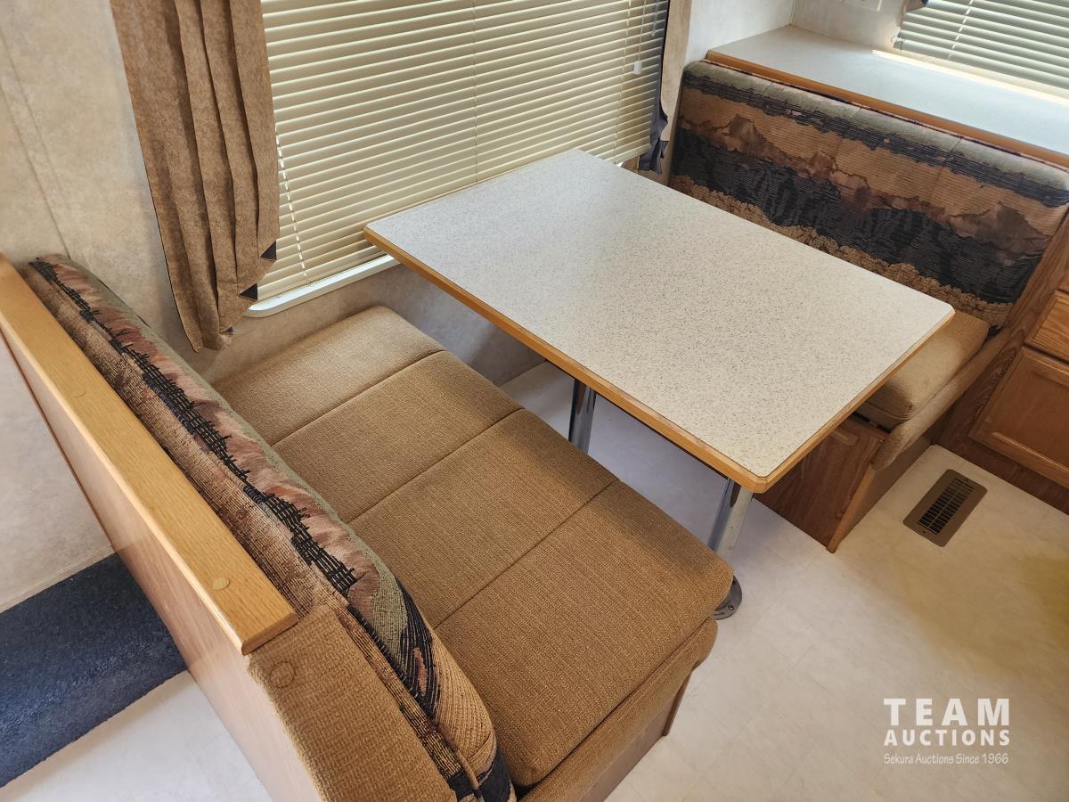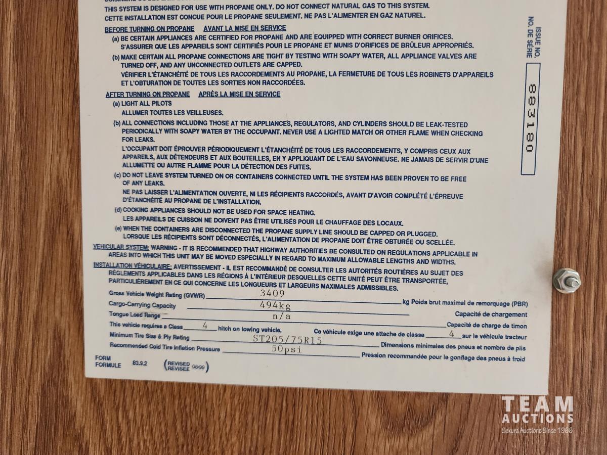 Fridge, stove, microwave, dinette, couch, bathroom, front bedroom, A/C, furnace, awning, outdoor shower, 205/75R15 tires