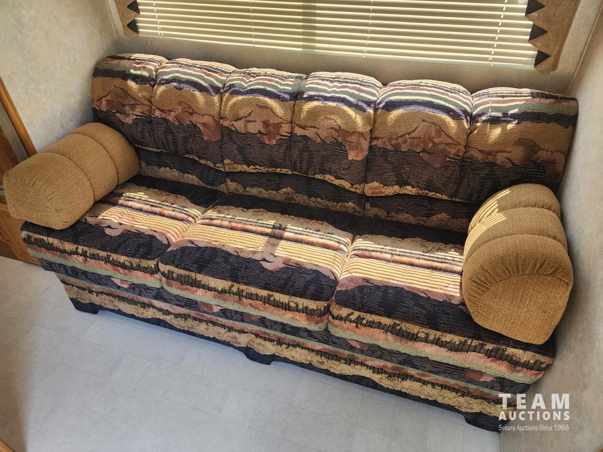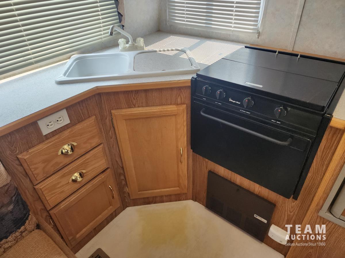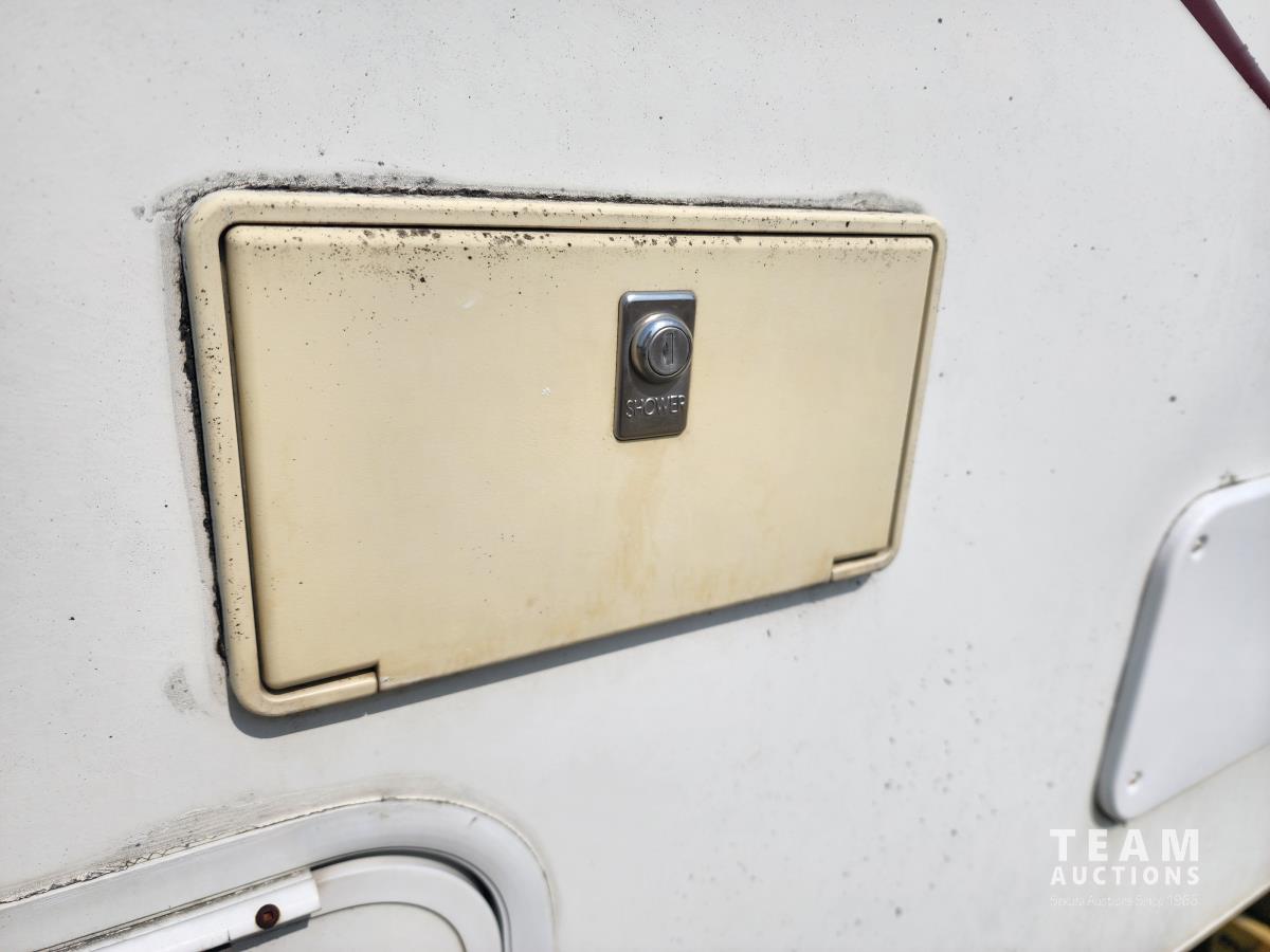 Fridge, stove, microwave, dinette, couch, bathroom, front bedroom, A/C, furnace, awning, outdoor shower, 205/75R15 tires