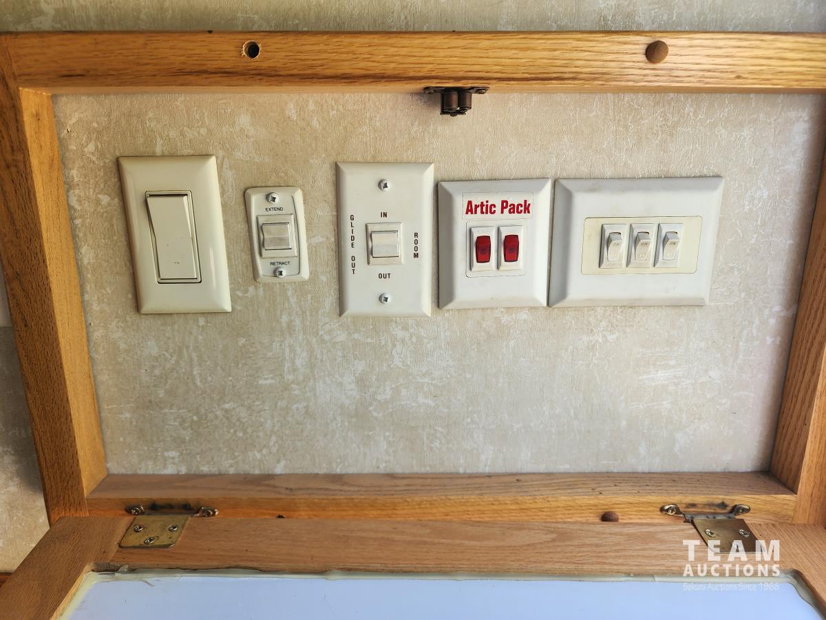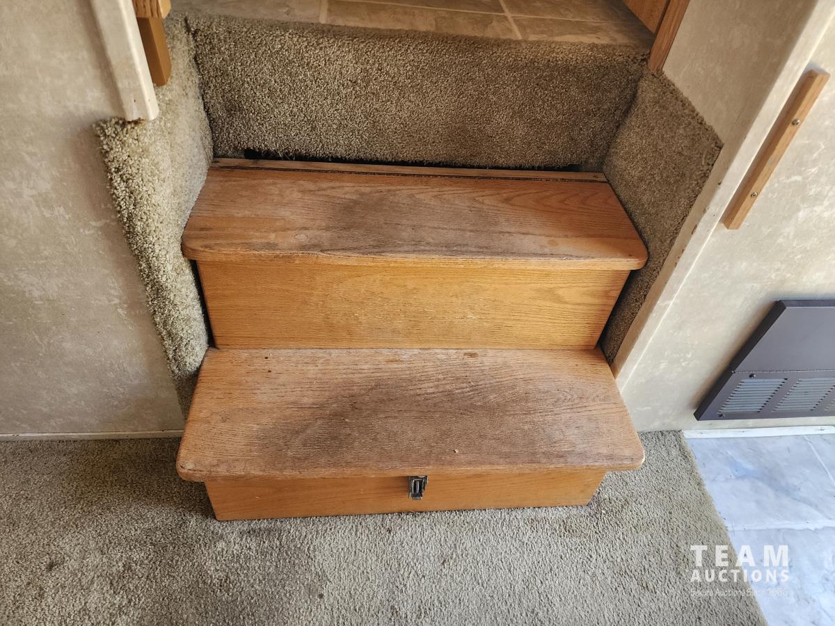 (3) slide outs, fridge, stove, microwave, dinette, couch, rocking chair, bathroom, front bedroom, A/C, furnace, outdoor shower, pass through storage, hitch tripod, 235/85R16 tires