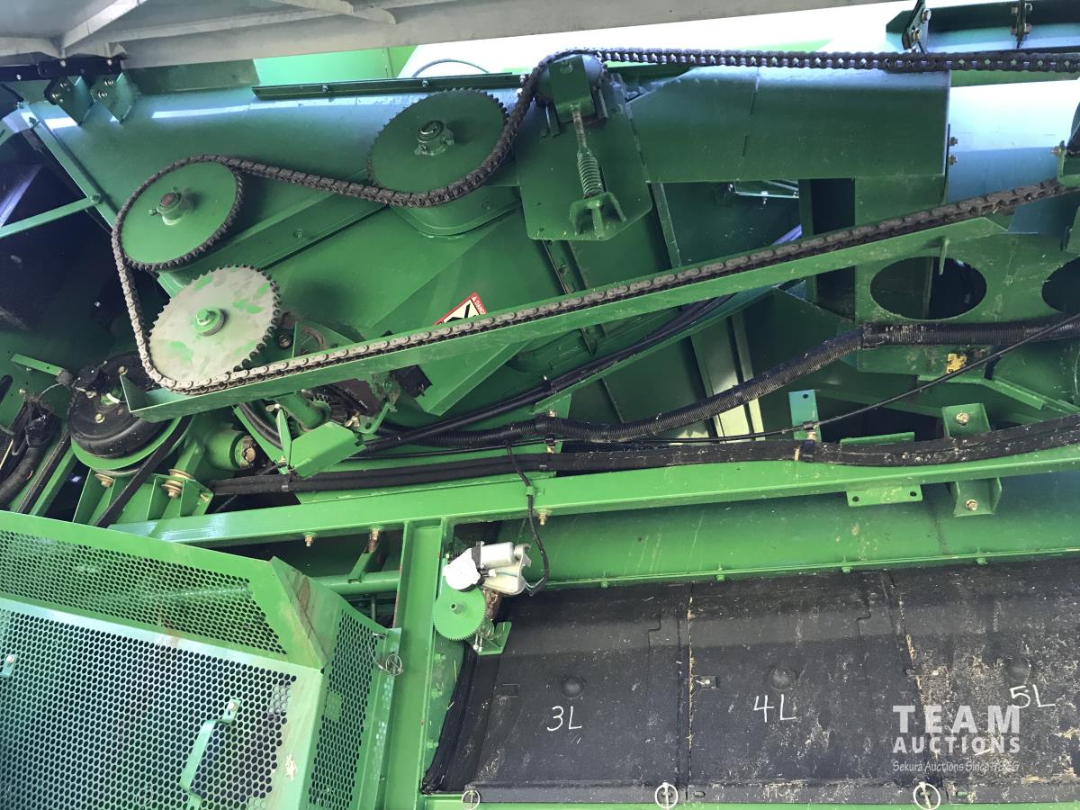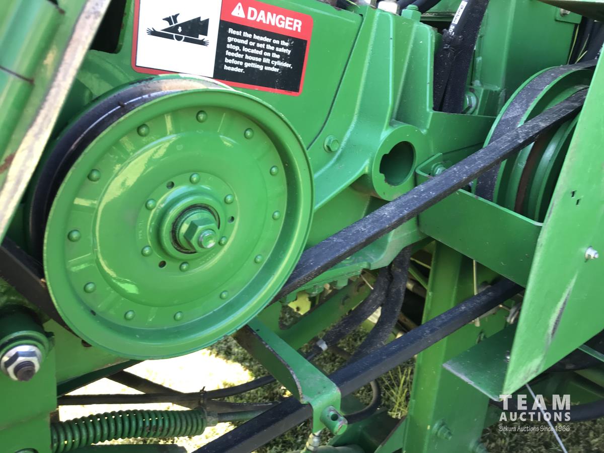 John Deere 914 14 ft pick-up header, 7 belt pickup, reverser, Crary Big Top Hopper topper, buddy seat, 800/65R32 drive tires, 18.4/26 rear tires