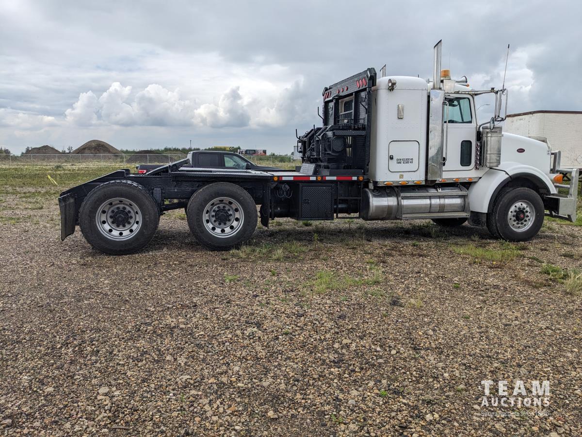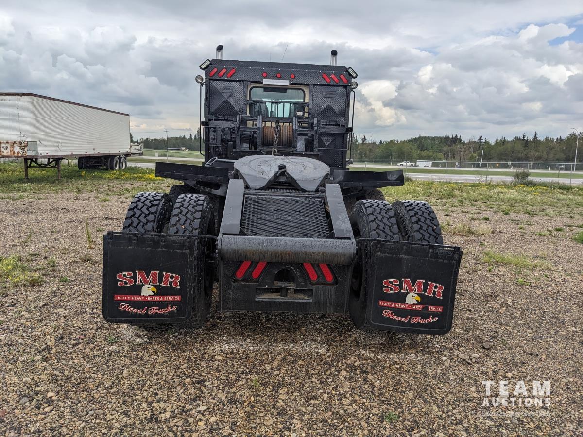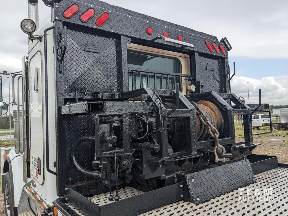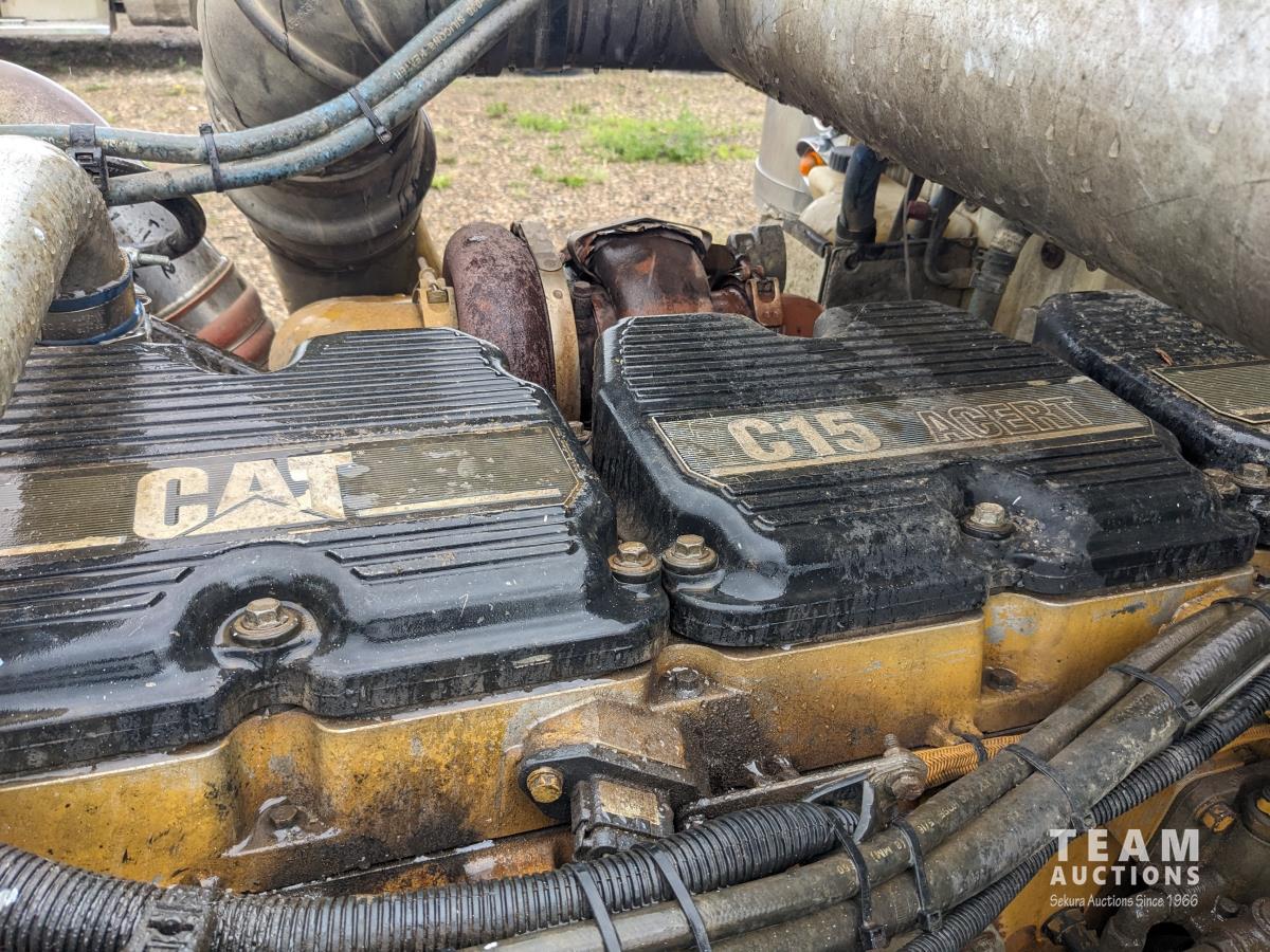 Caterpillar C15 15.2 L 6 cylinder engine, Eaton Fuller 18 speed manual transmission, flat top 36 inch sleeper, air ride driver seat, moose bumper, steel headache rack, steel tool boxes, beacons, chain holders, Tulsa hydraulic winch, PTO, wet kit, live roll, air ride suspension, 16,000 lb front axle, 46,000 lb rear axles, full lockers, 244 inch WB, all aluminum wheels, 365/65R22.5 front tires, 11R24.5 rear tires