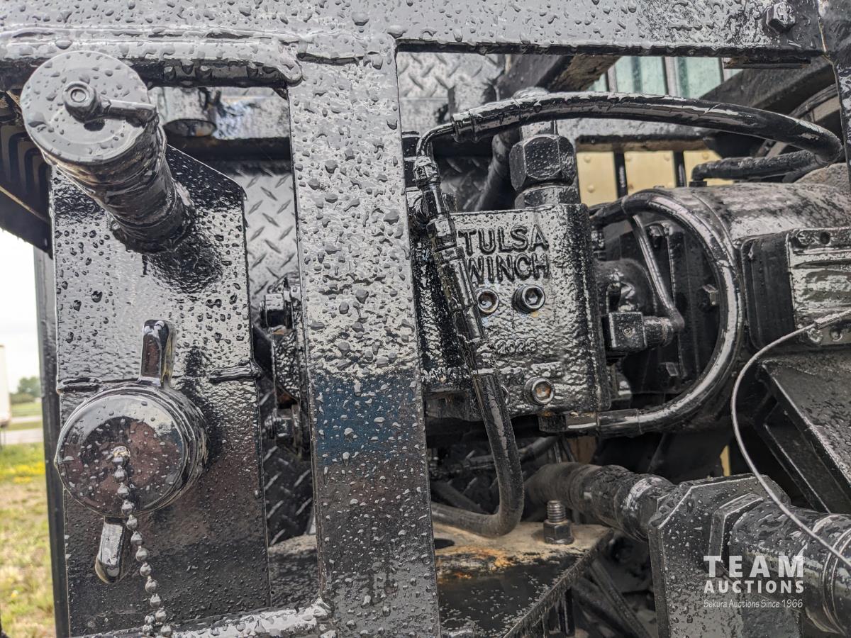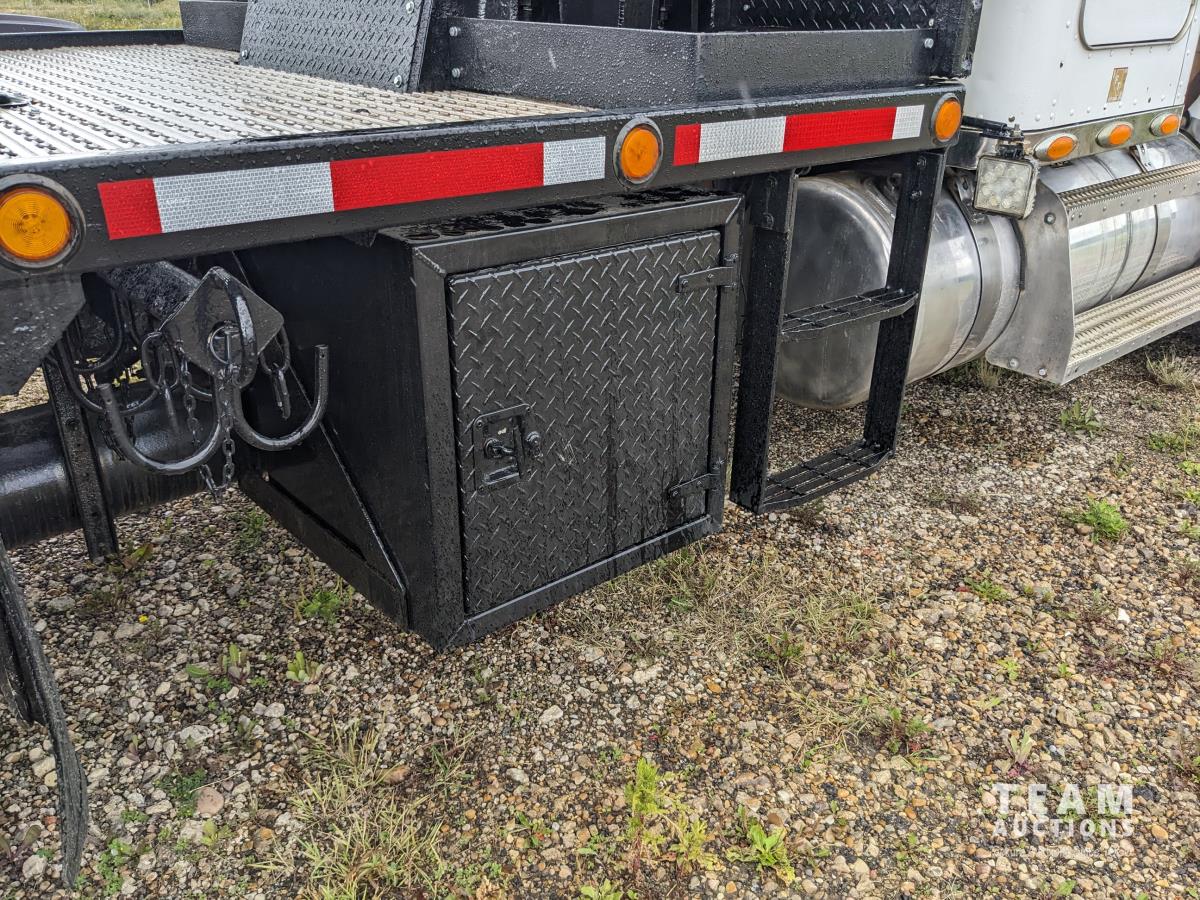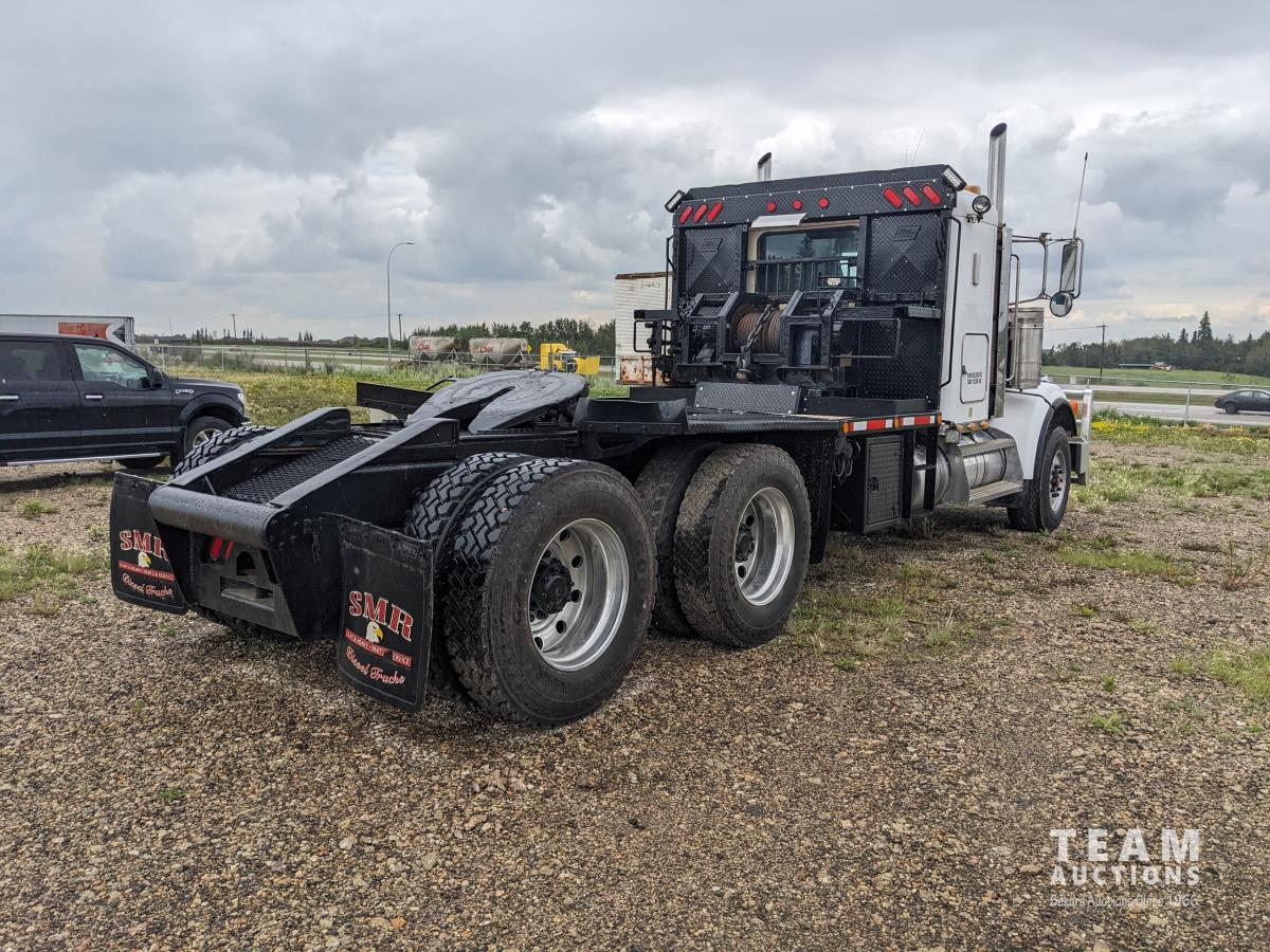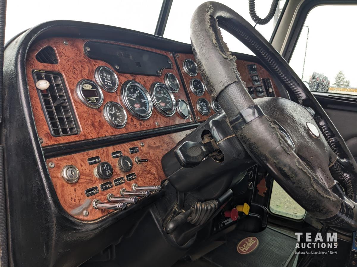 Caterpillar C15 15.2 L 6 cylinder engine, Eaton Fuller 18 speed manual transmission, flat top 36 inch sleeper, air ride driver seat, moose bumper, steel headache rack, steel tool boxes, beacons, chain holders, Tulsa hydraulic winch, PTO, wet kit, live roll, air ride suspension, 16,000 lb front axle, 46,000 lb rear axles, full lockers, 244 inch WB, all aluminum wheels, 365/65R22.5 front tires, 11R24.5 rear tires