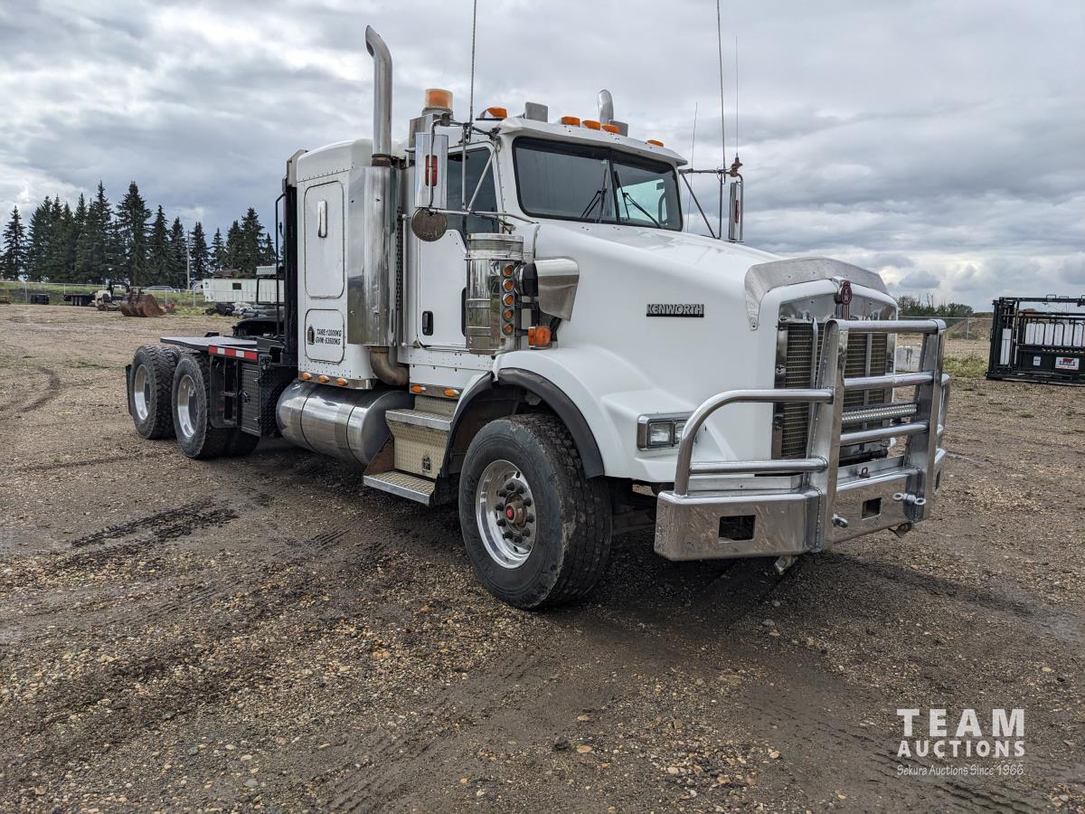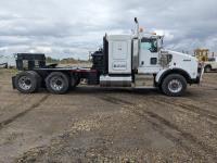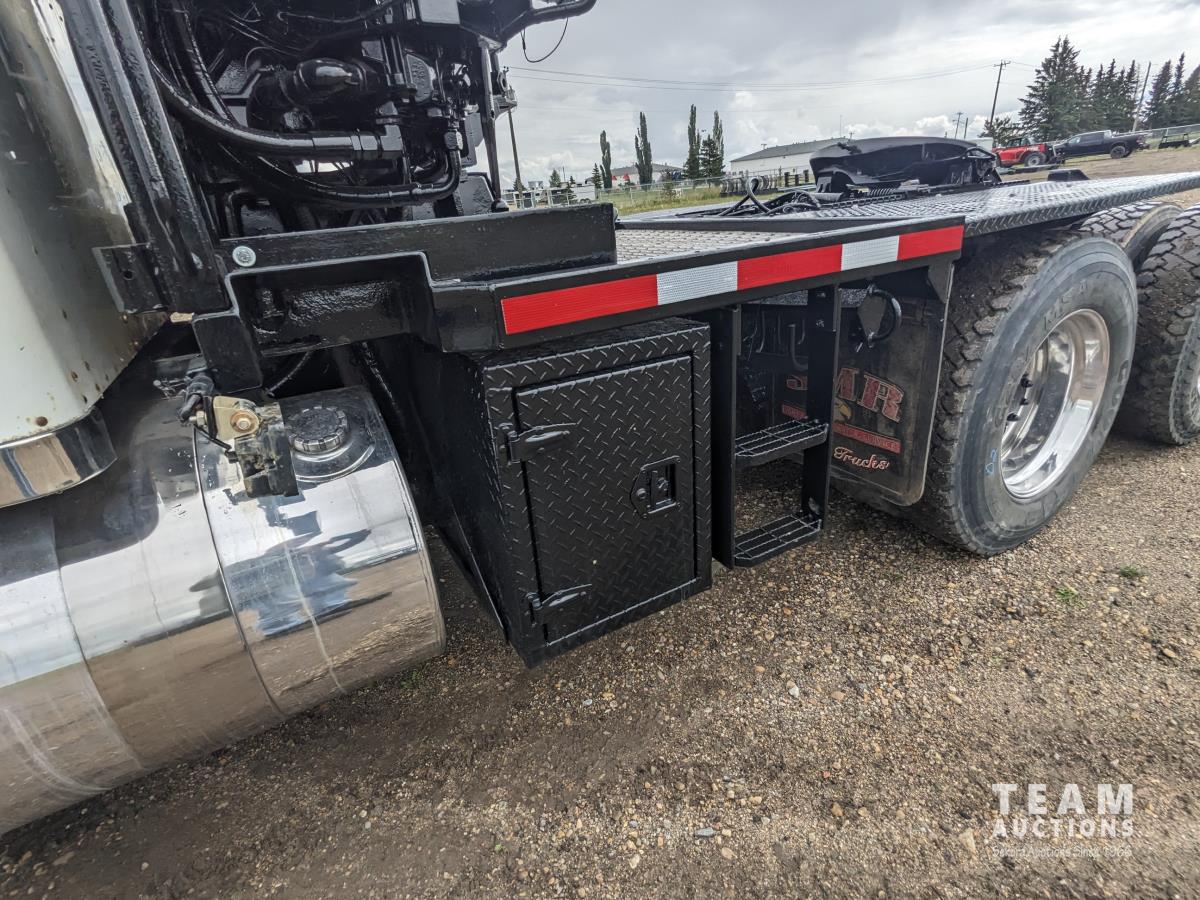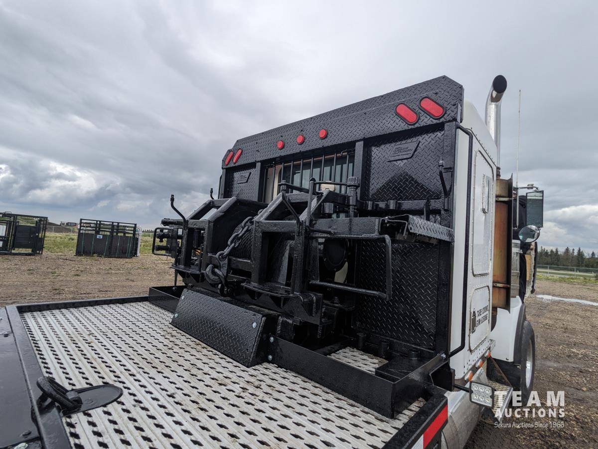 Caterpillar C15 15.2 L 6 cylinder 475 HP engine, emissions deleted, Eaton Fuller 18 speed manual transmission, flat top 36 inch sleeper, air ride driver seat, hydraulic wet kit, moose bumper, headache rack, steel tool boxes, beacons, chain holders, Tulsa hydraulic winch, rear live roll, air ride suspension, 16,000 lb front axle, 46,000 lb rear axles, full lockers, 4.10 ratio, 245 inch WB, all aluminum wheels, 365/65R22.5 front tires, 11R24.5 rear tires