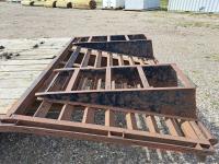 96 inch wide deck, 60 inch beaver tails, wood deck, flip over ramps, electric brakes, spring suspension, rub rails, stake pockets, dual landing gear jacks, 10000 lb axles, 235/80R16 tires