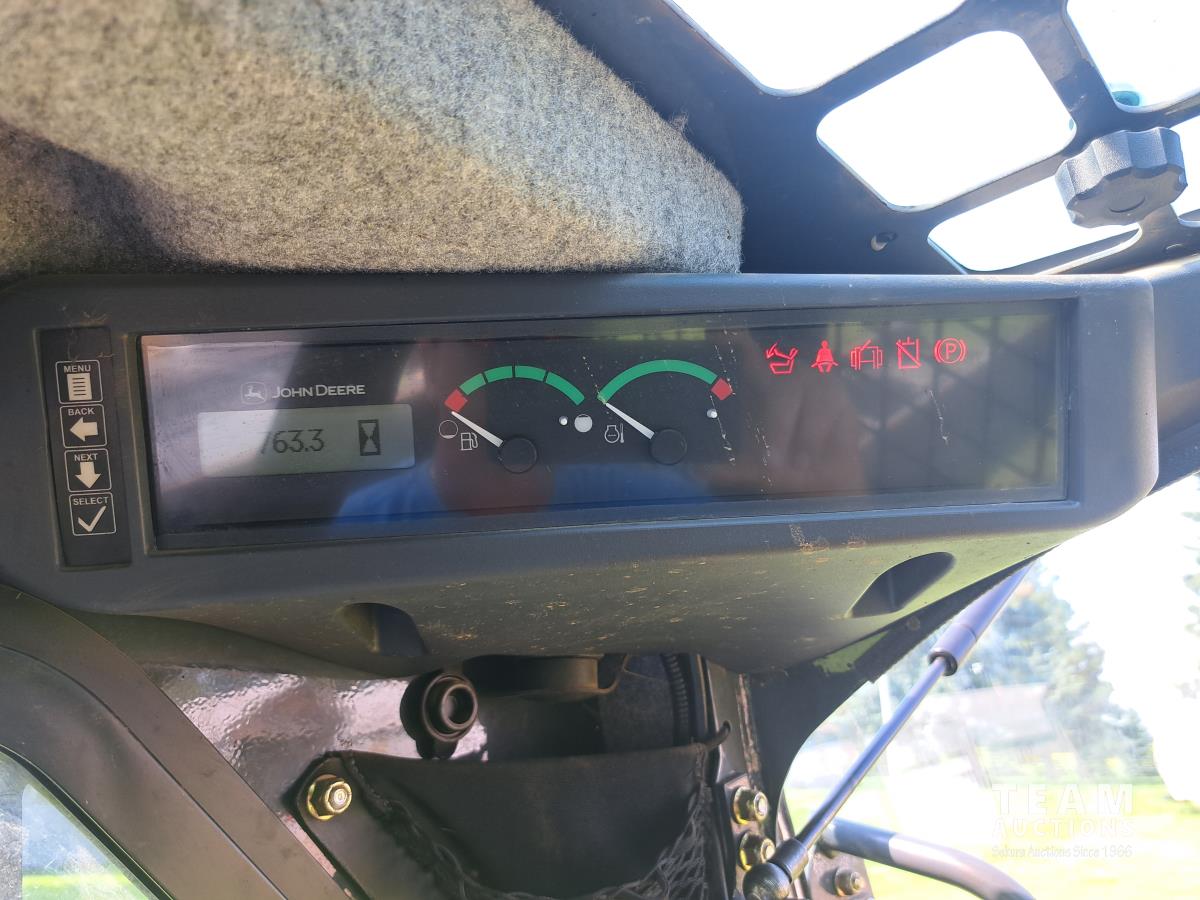John Deere 70 inch smooth bucket, Q/A, cab, AC, heat, joy stick controls, Aux hydraulics, 12-16.5 tires