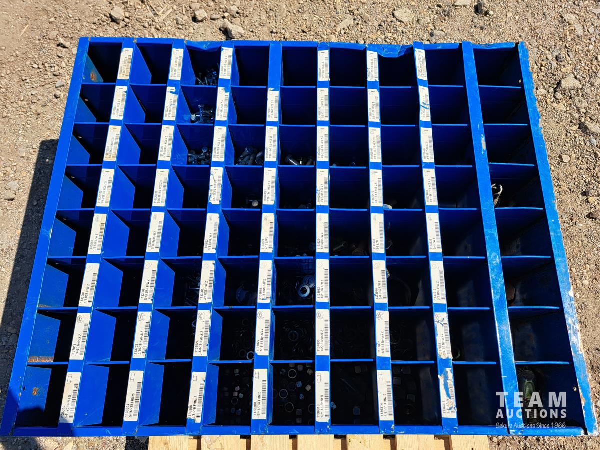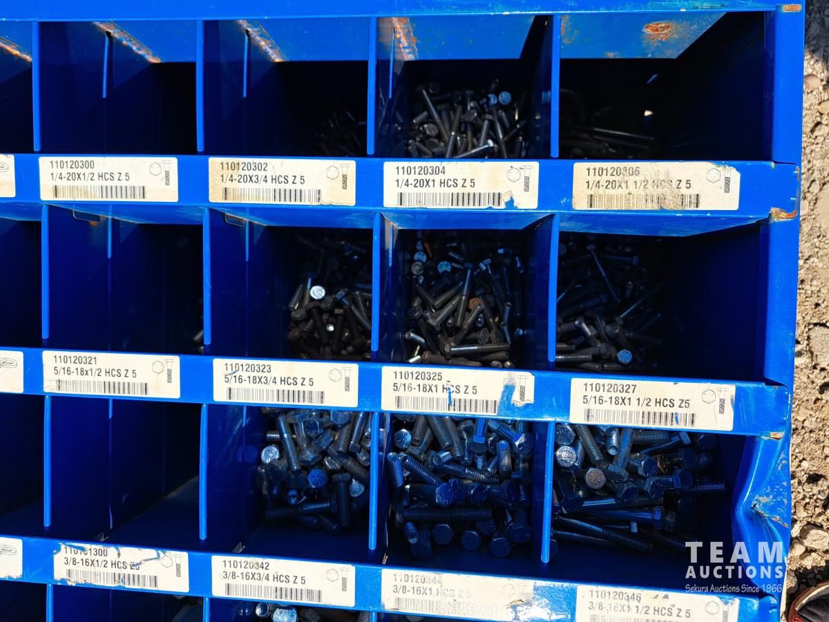 Loaded with a large quantity of unused standard and high grade bolts, washers & miscellaneous, 34 inch wide X 42 inch high X 12 inch deep