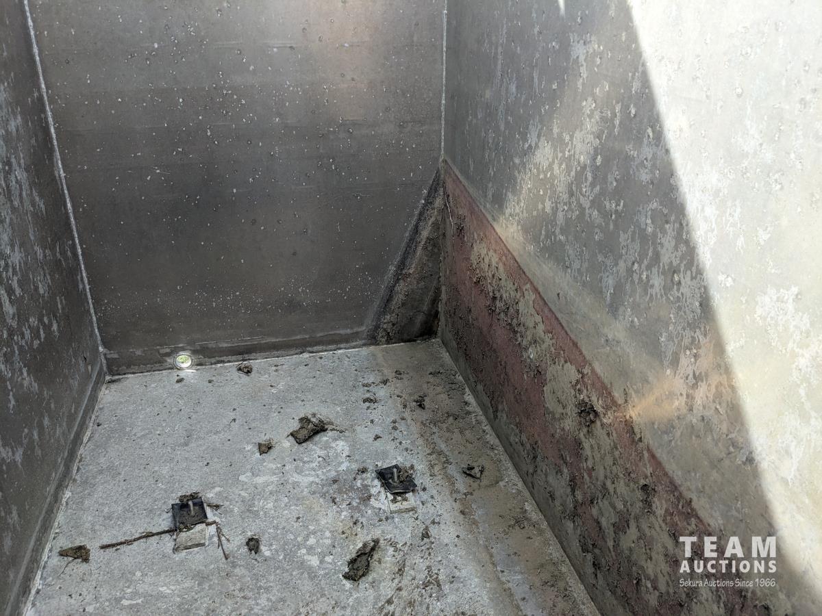 54 inch wide X 96 inch long X 113 inch high, 2 inch pipe thread drain, open top
