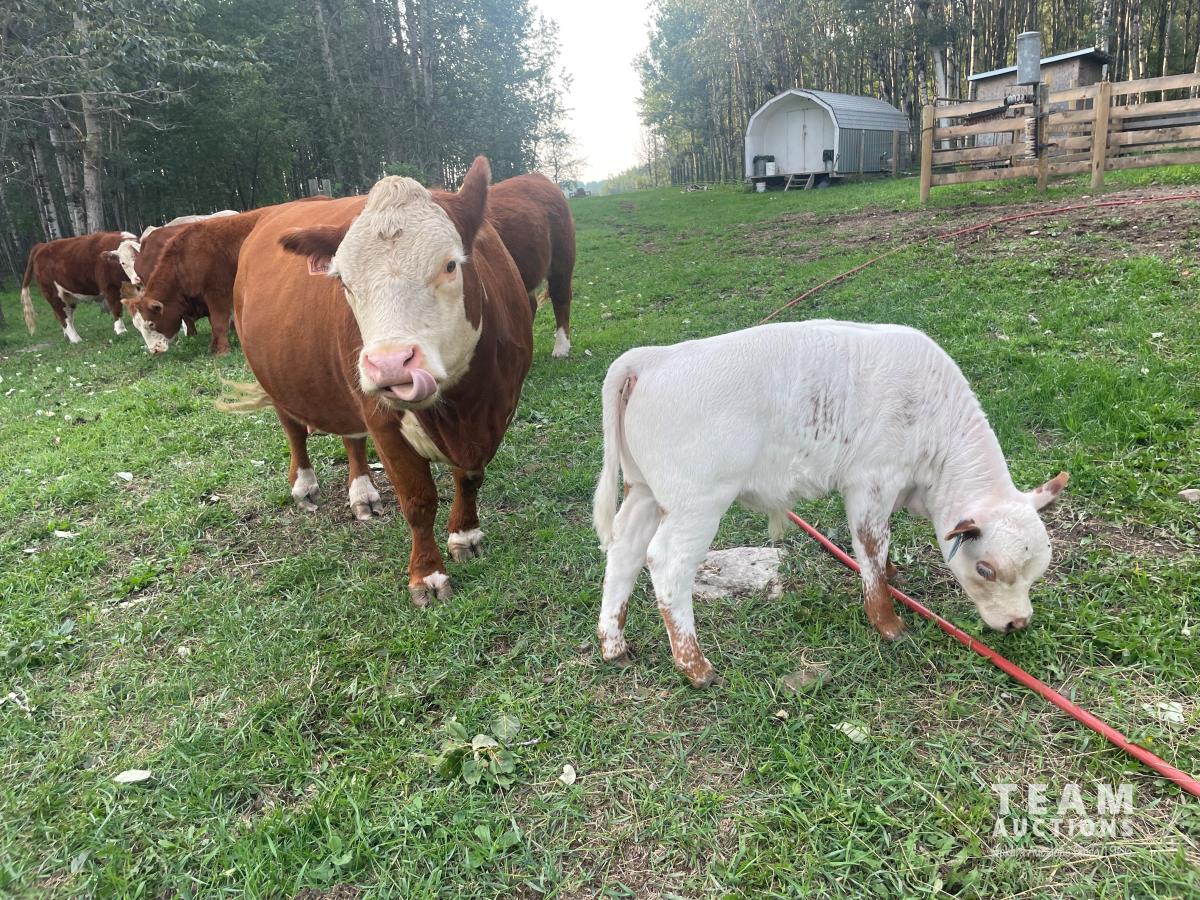 458 Lotto - Mini 6 Year Old Hereford Cow with Calf At Foot