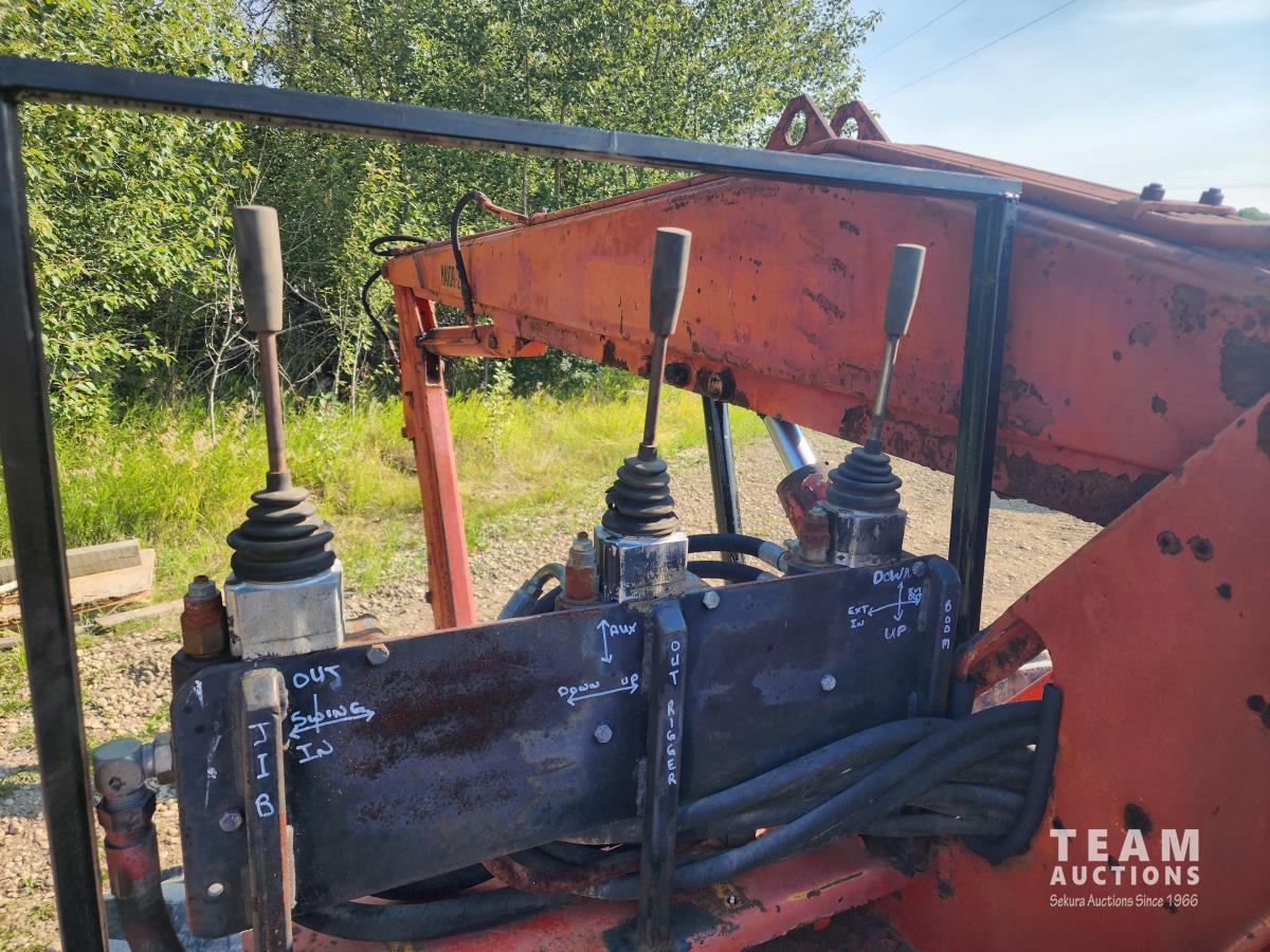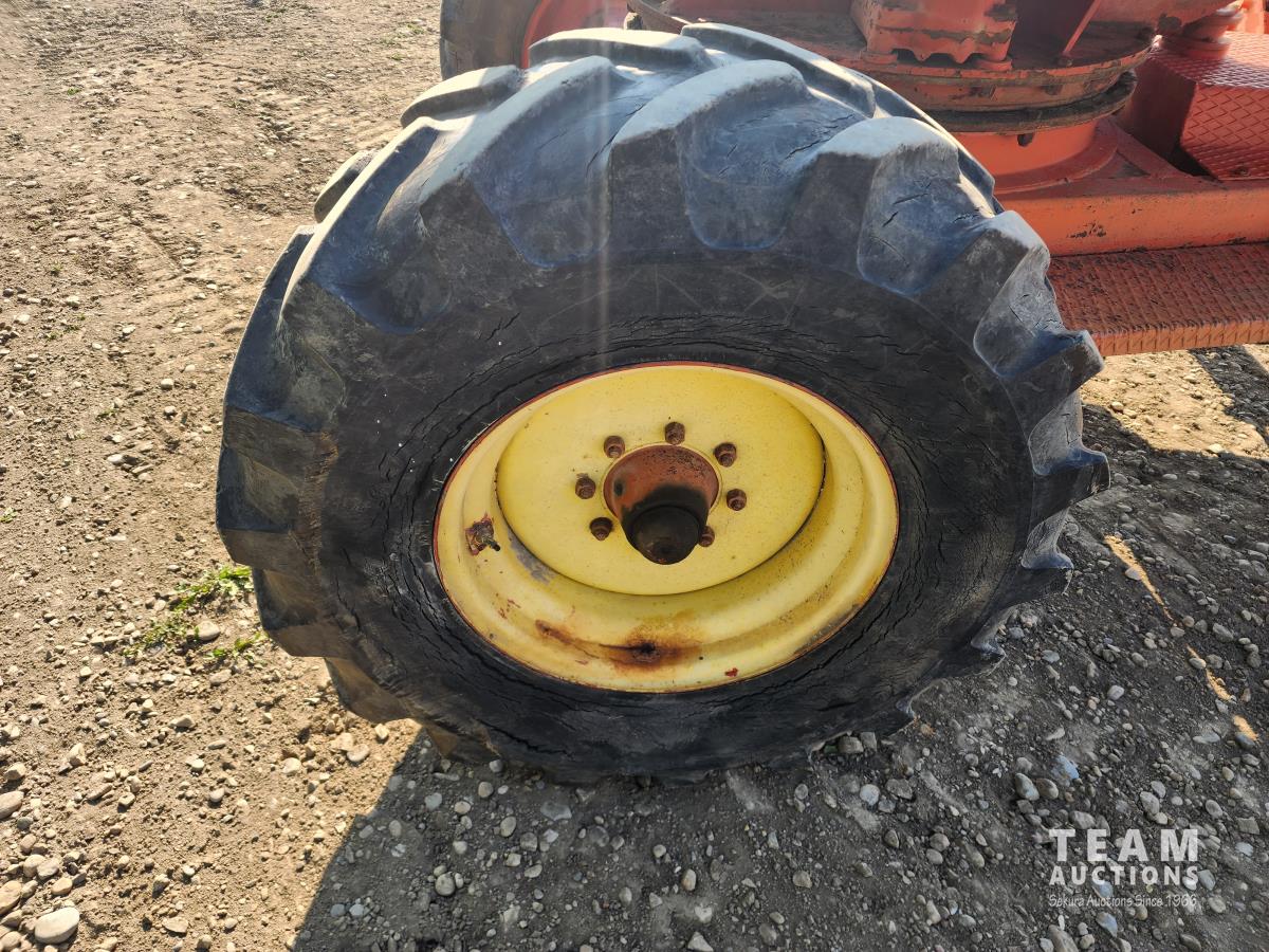 540 PTO, PTO driven hydraulics, 360 swing extendable boom, outriggers, plumbed for extra hydraulic fitting, rear hitch to pull trailer, 375/75R20 tires