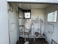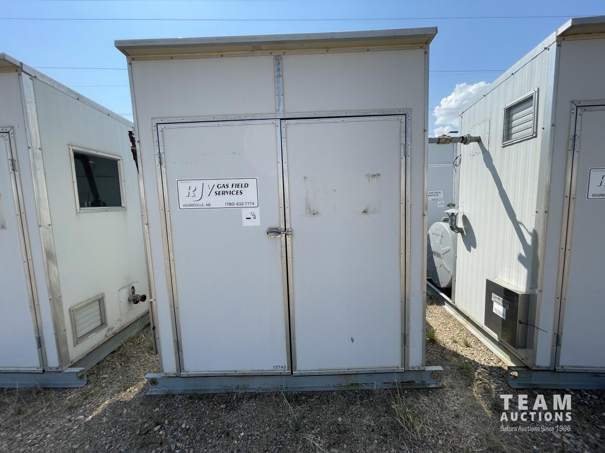 Skid dimensions 7 ft wide X 8 ft long X 8 ft high, building dimensions 4 ft wide X 7 ft long X 7 ft 0 inch high, double wall Westeel mounted tank, chemical injectors and meters
