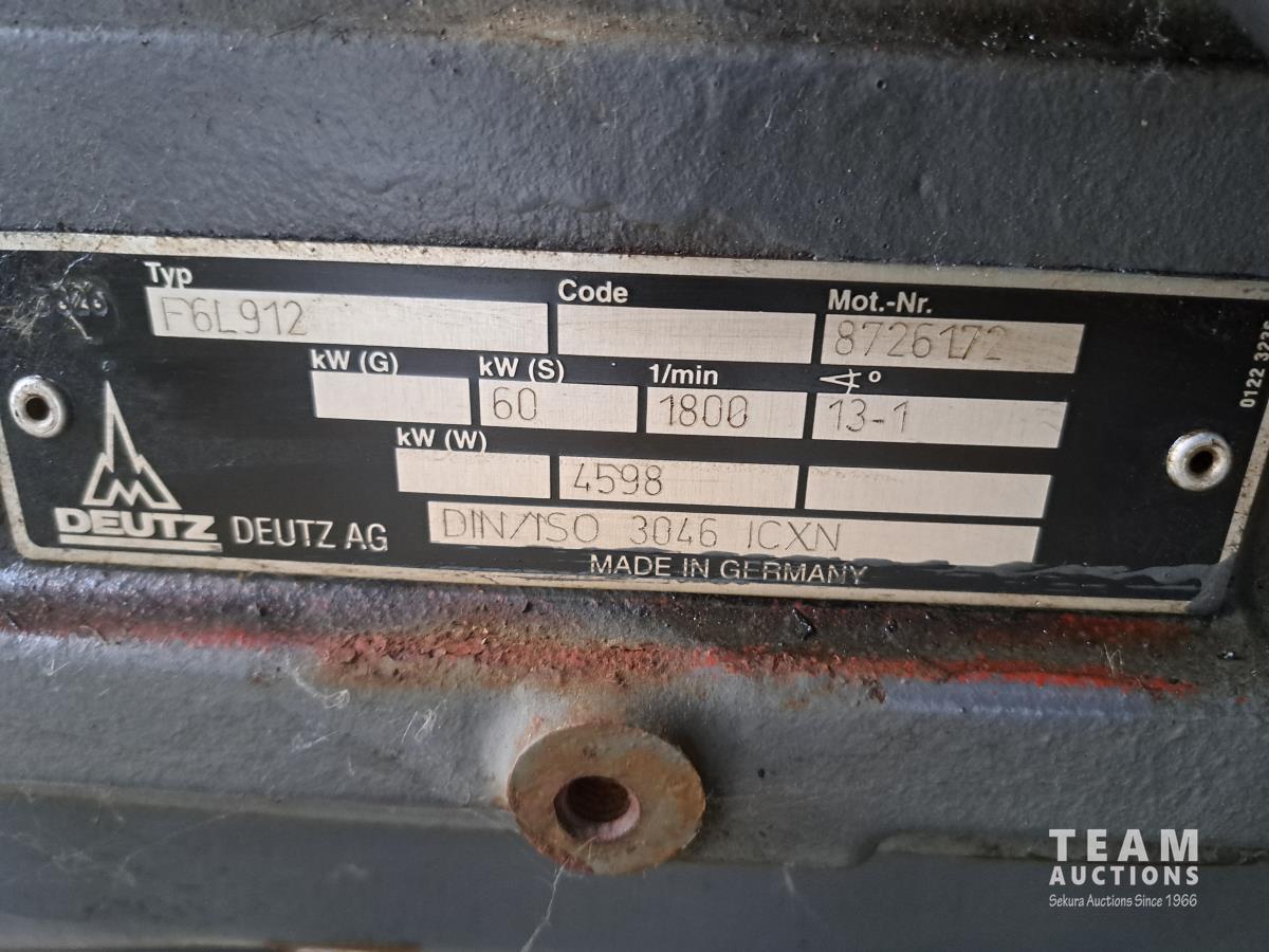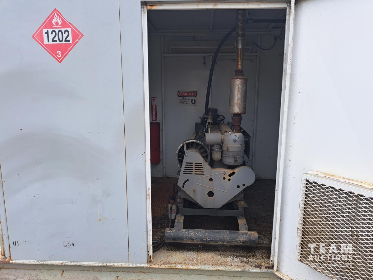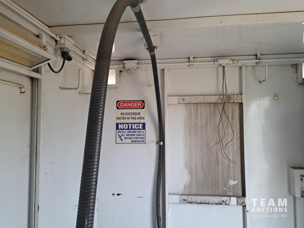 8 ft w x 14.5 ft l, 1700l fuel tank, Deutz 6 cylinder diesel engine, 62.5kva generator, 60 hertz, 3 phase, 120/208 volt