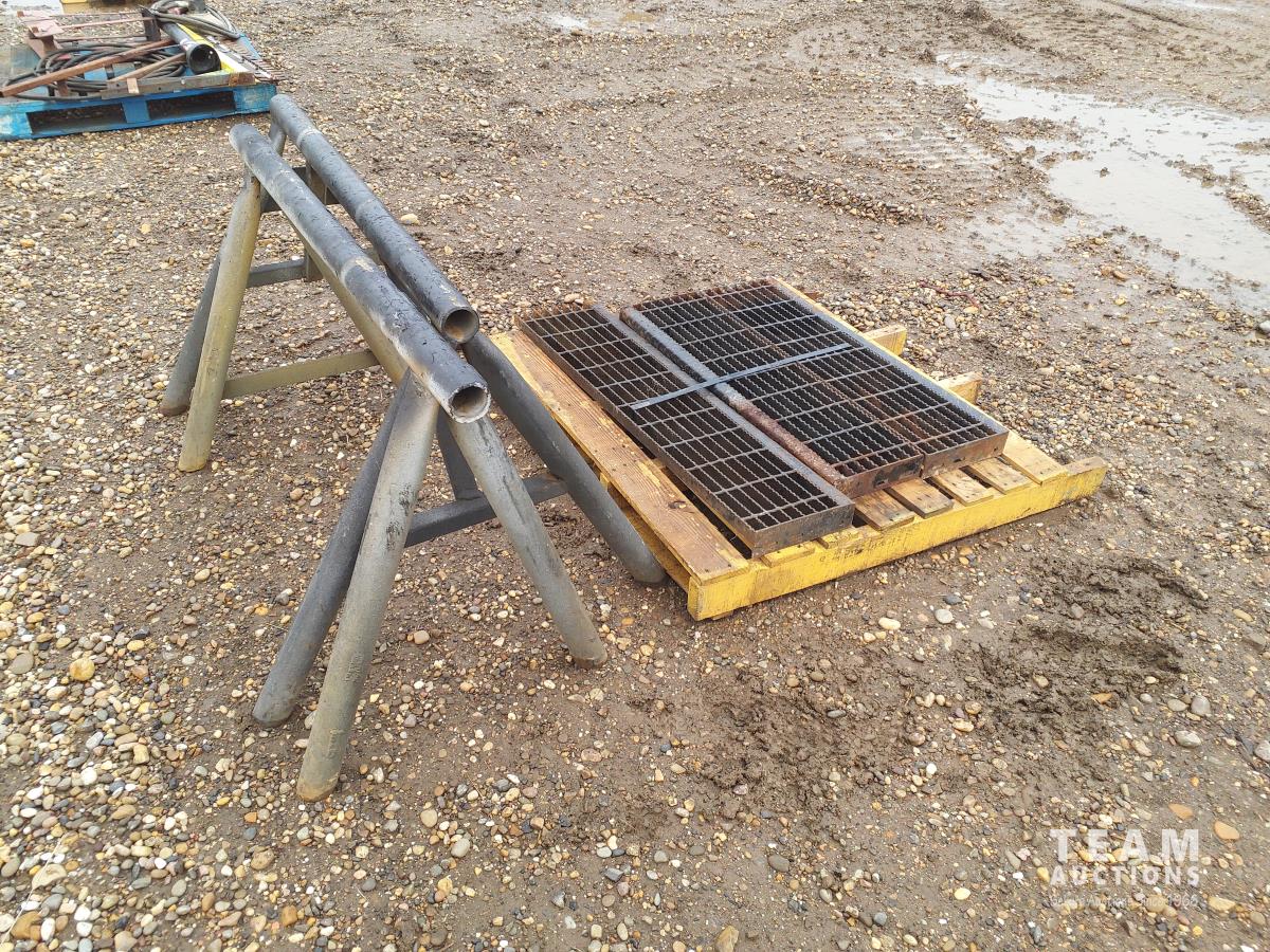 797 (2) Steel Saw Horses and Misc Steel Grading