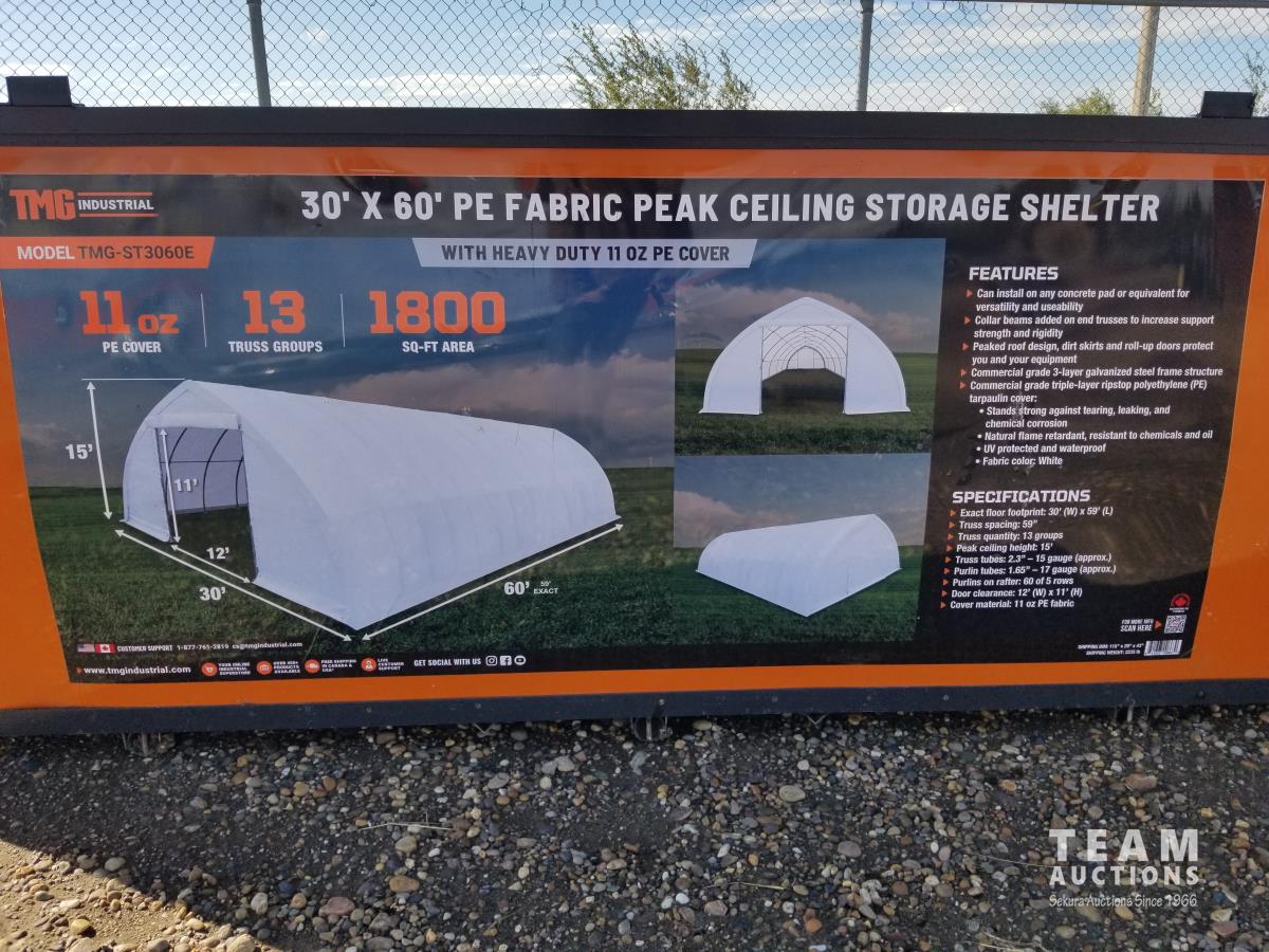 118 TMG Industrial ST3060E 30 Ft X 60 Ft Peak Storage Shelter (Unused)