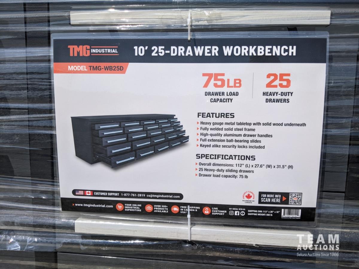 2029 TMG Industrial 10 Ft 25 Drawer Workbench (Unused)