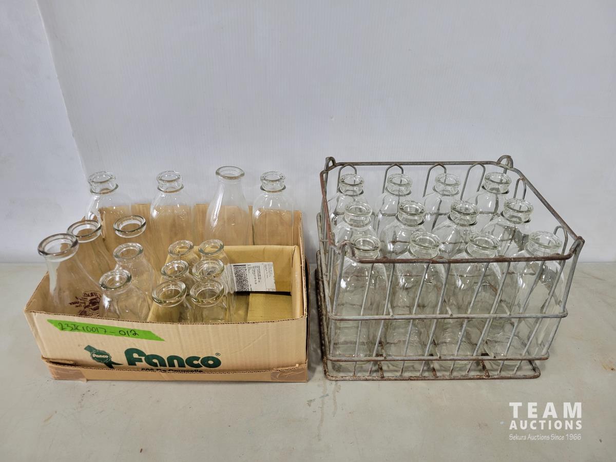 1520 (12) Milk Bottles in Metal Crate and (15) Assorted Milk Bottles
