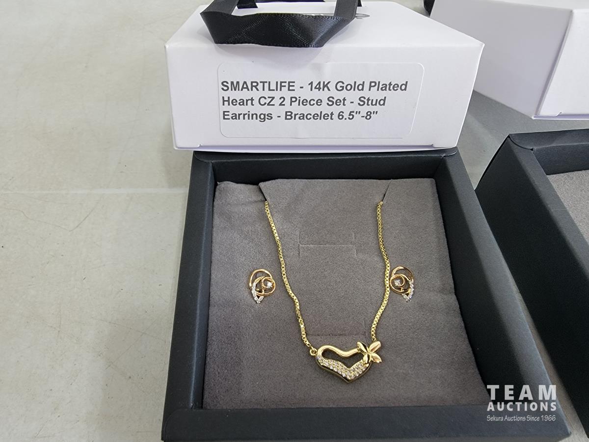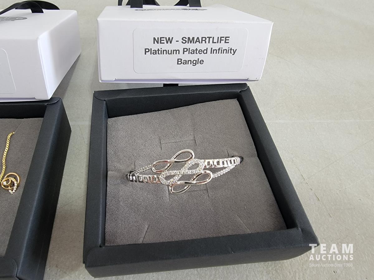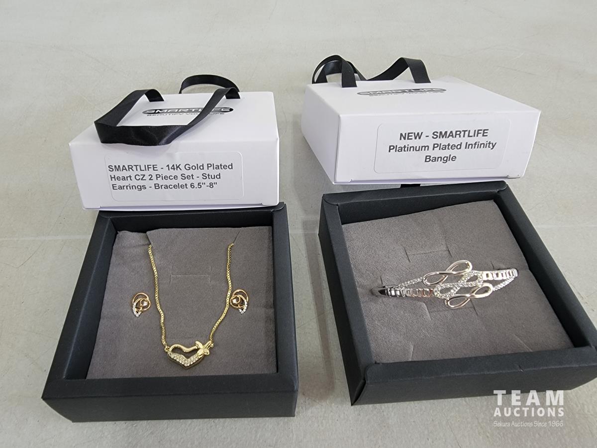 1808 14K Gold Plated Cz 2-Pc Set and Platinum Plated Infinity Bangle (Unused)