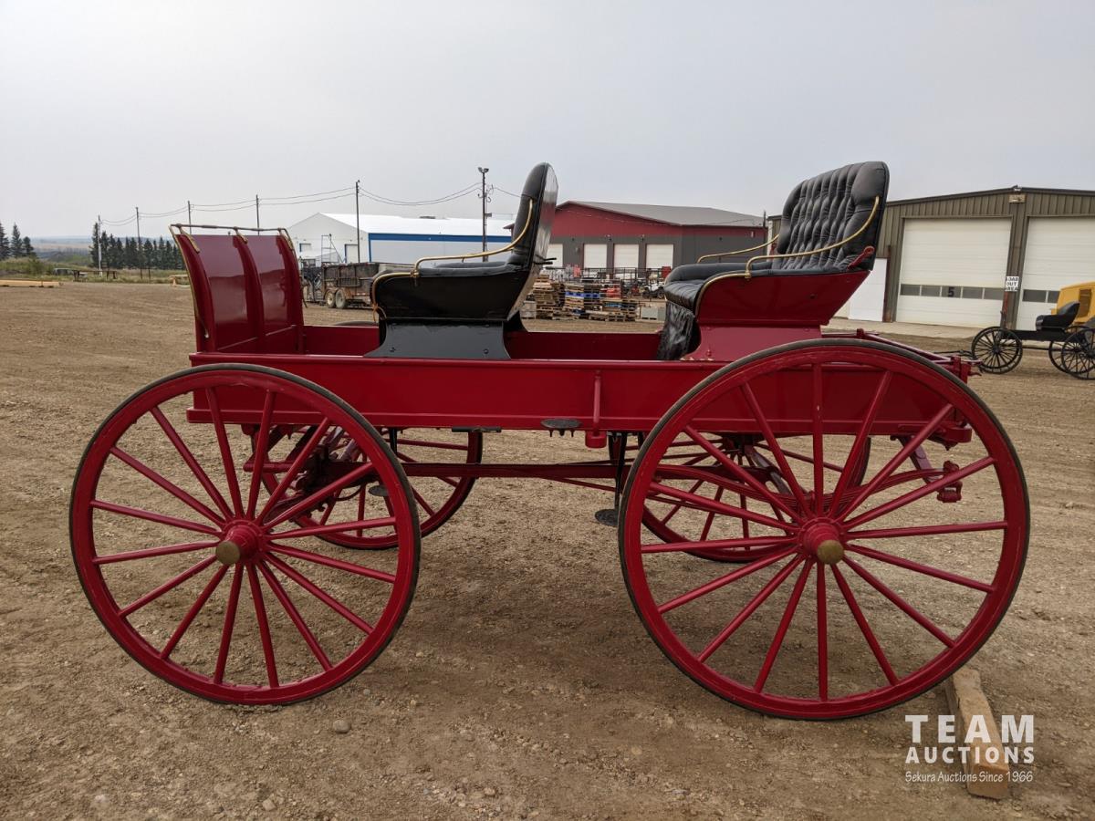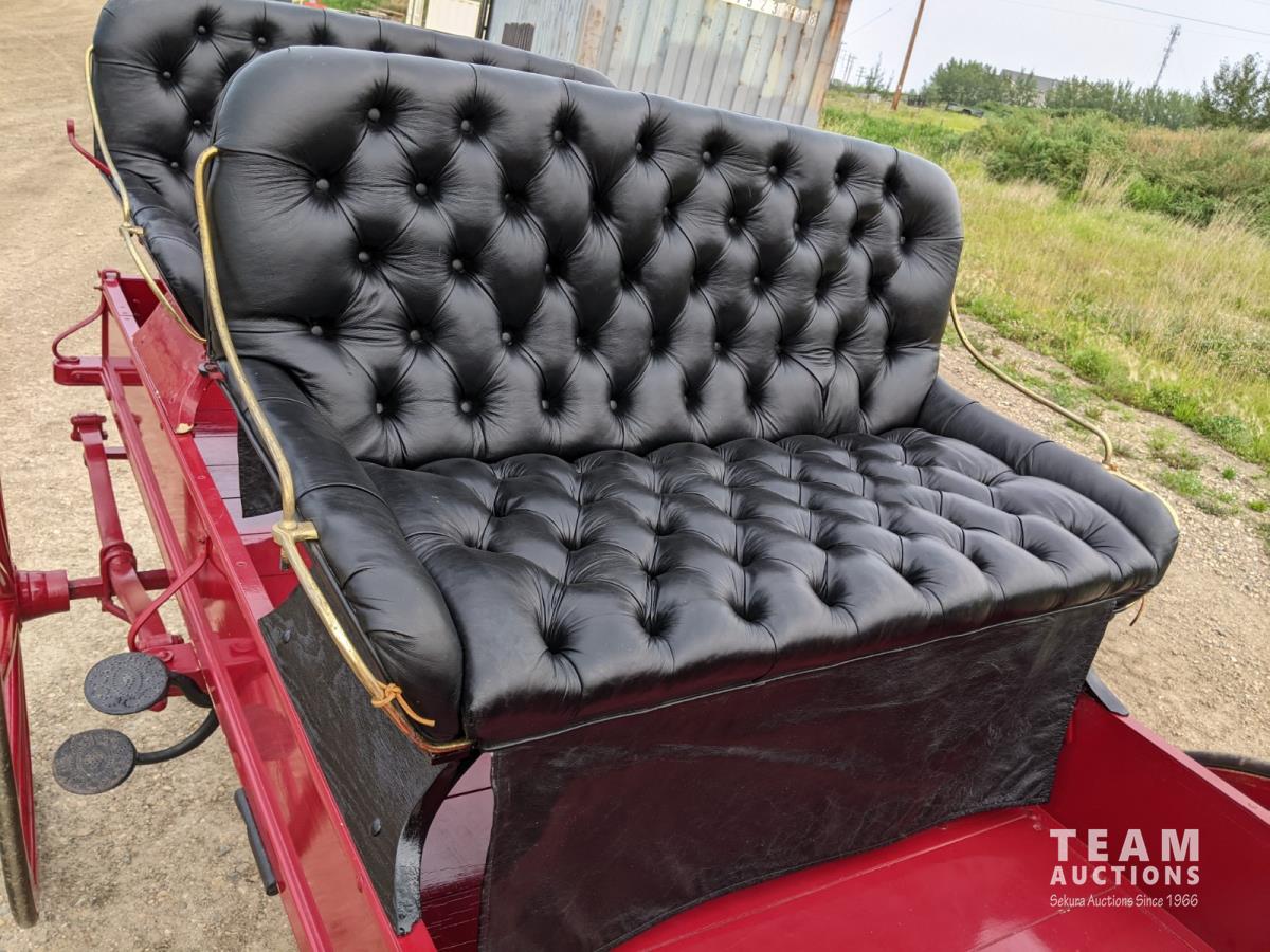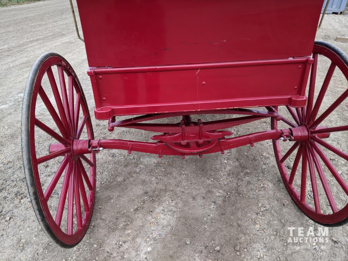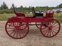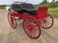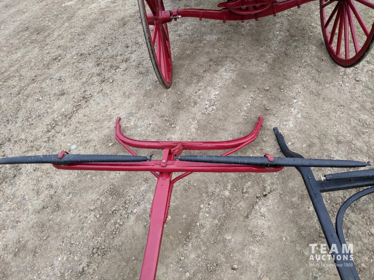 All rubber wheels, comes with double tree pole and single shaft, leather seat, running gear refurbished early 90's