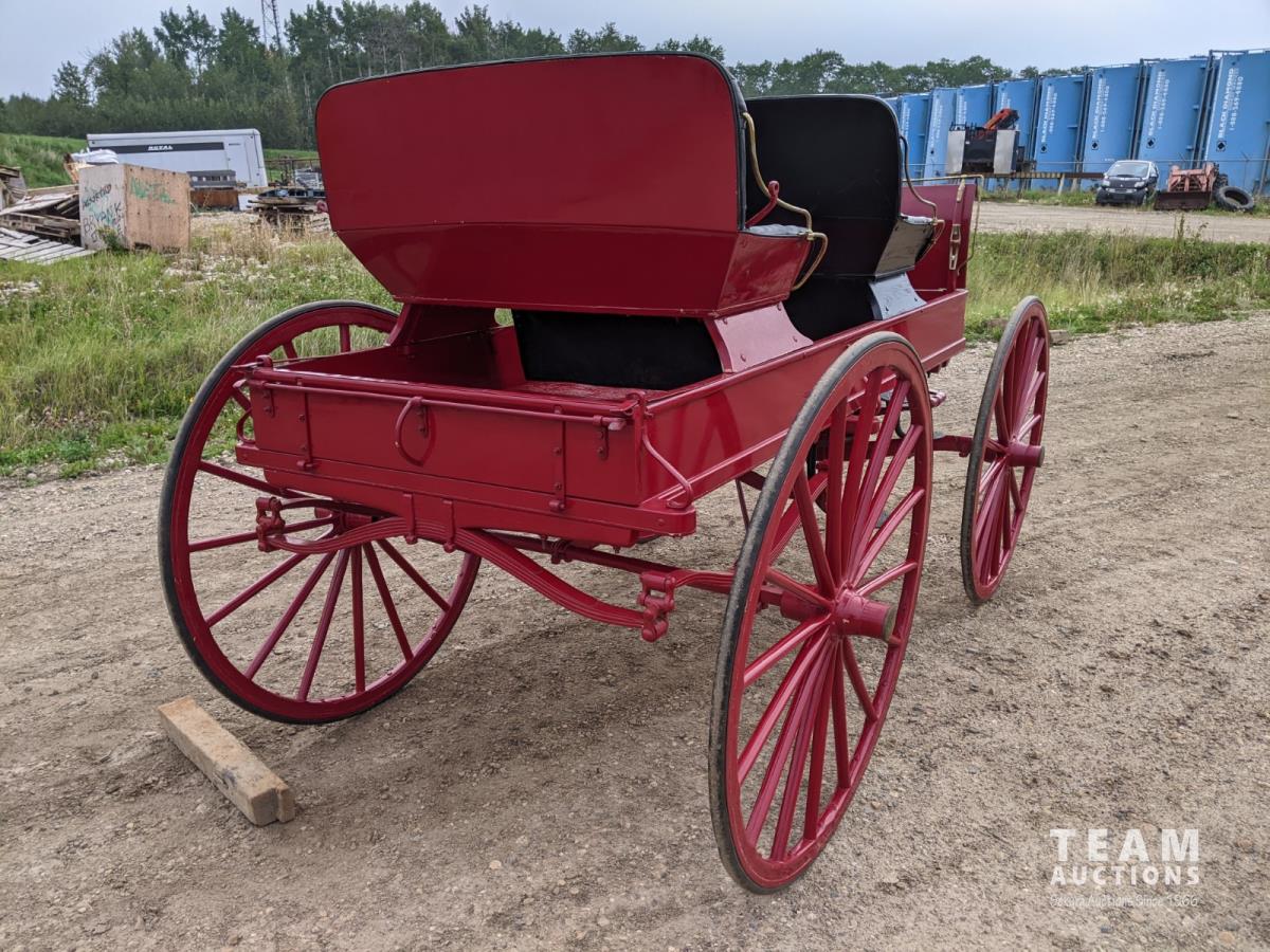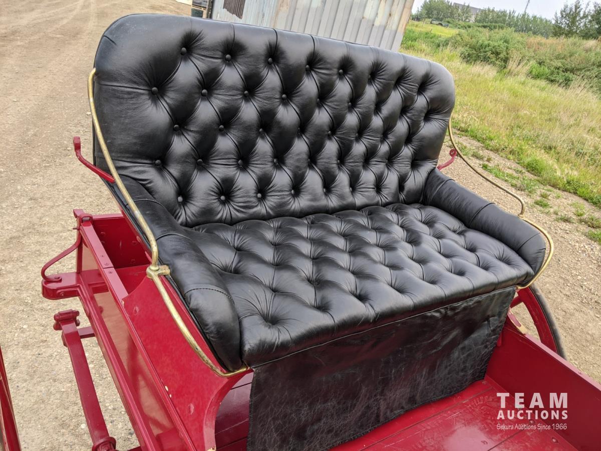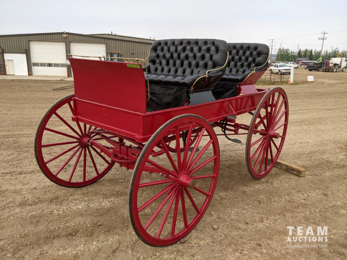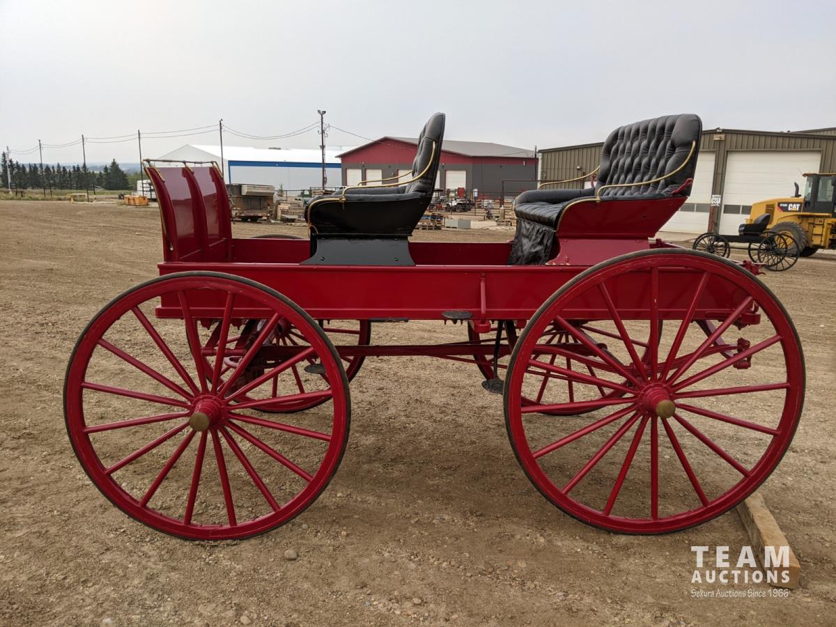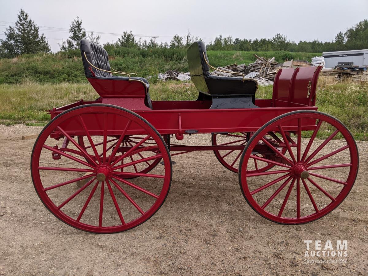 All rubber wheels, comes with double tree pole and single shaft, leather seat, running gear refurbished early 90's