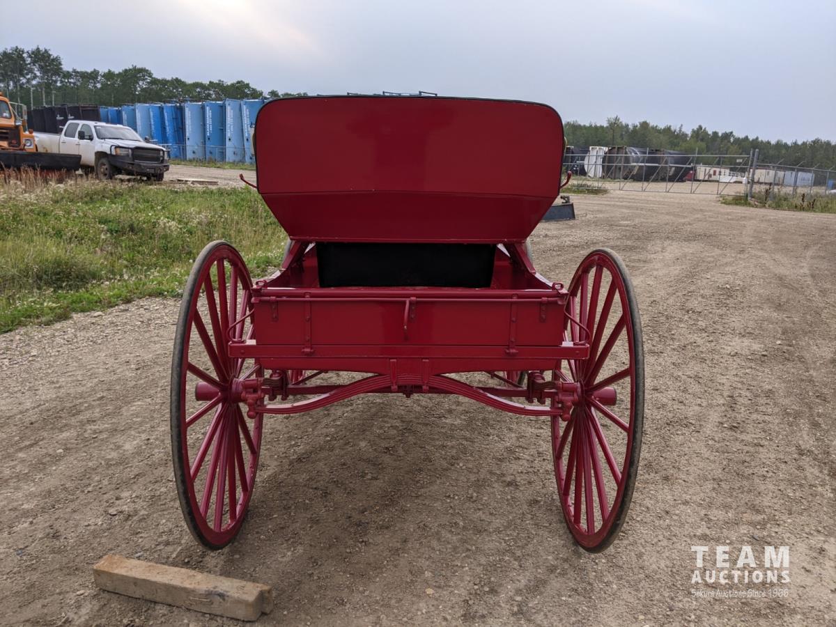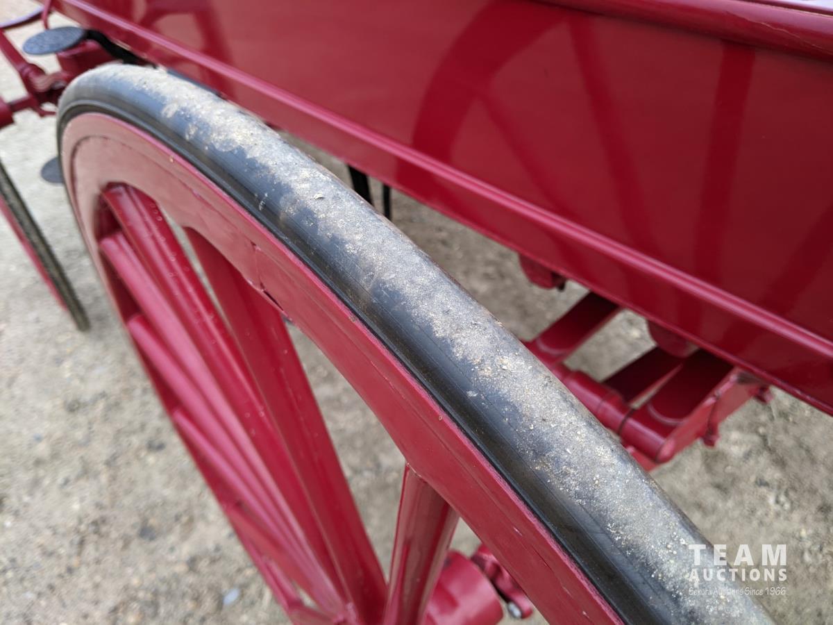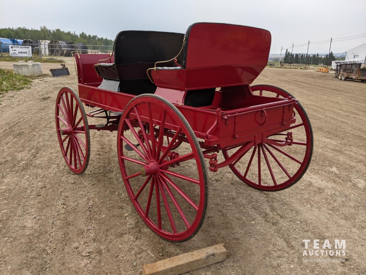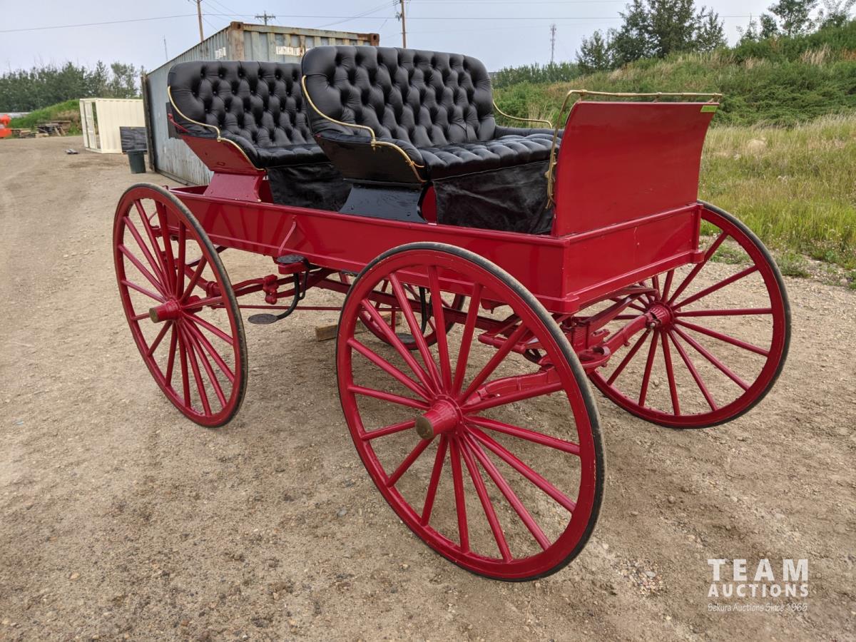 All rubber wheels, comes with double tree pole and single shaft, leather seat, running gear refurbished early 90's