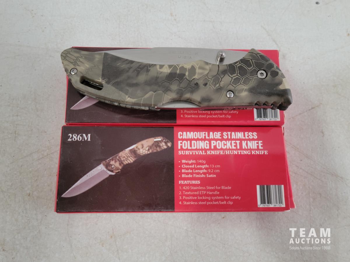 1764 (2) Camouflage Stainless Folding Pocket Knives (Unused)