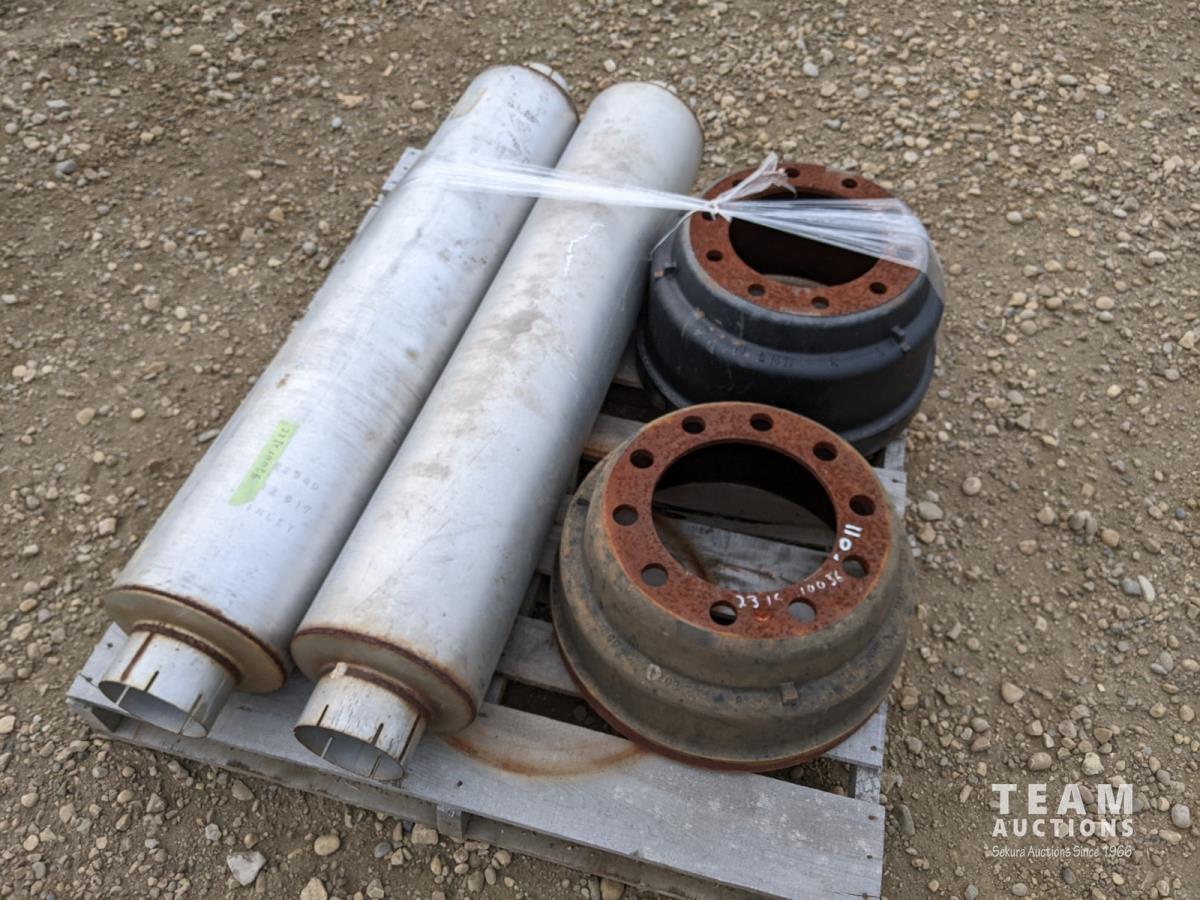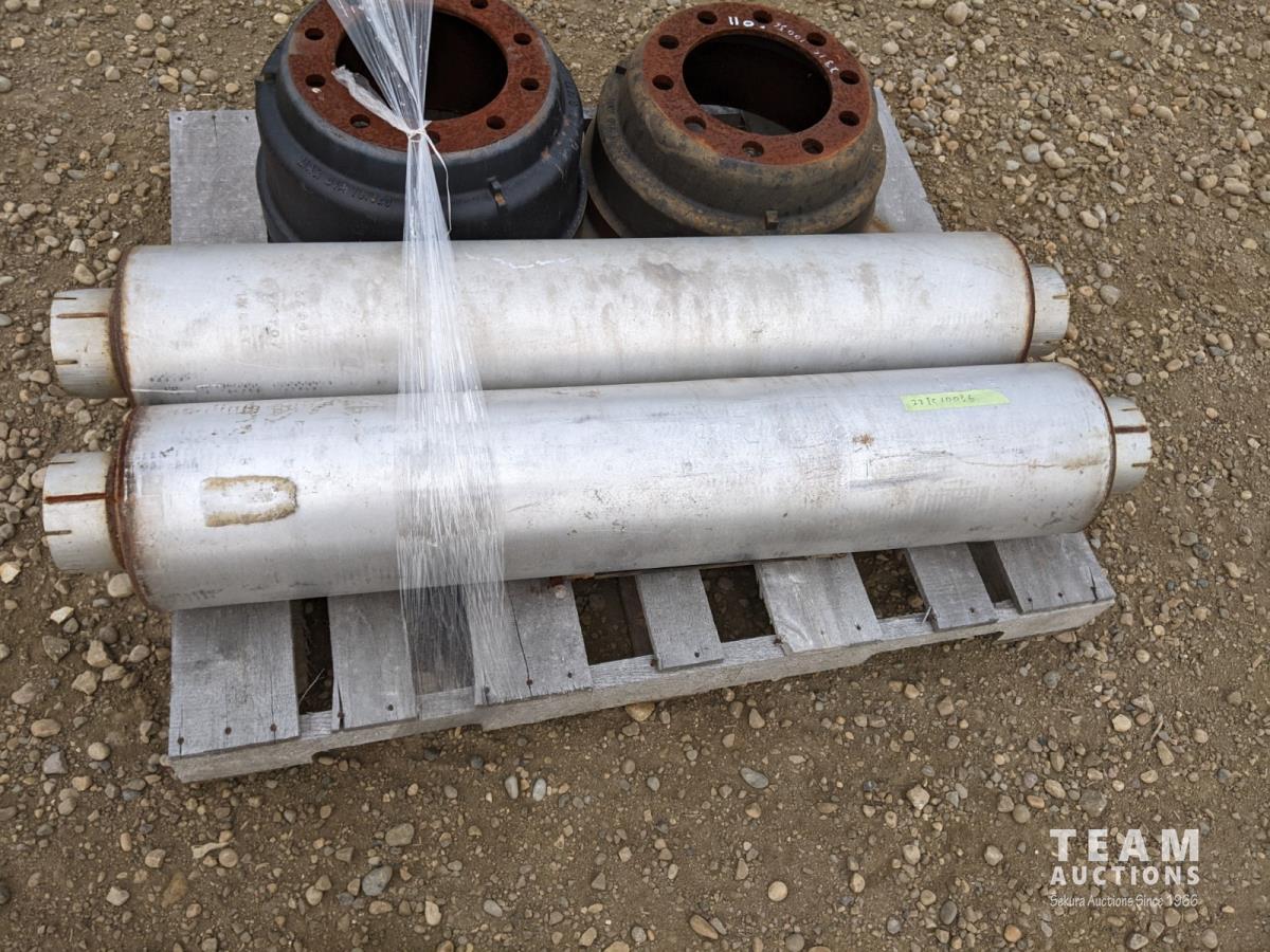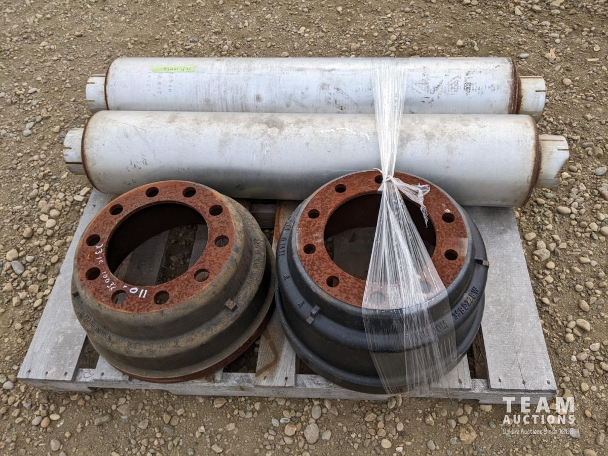 1929 (2) Mufflers and (2) Brake Drums (Unused)