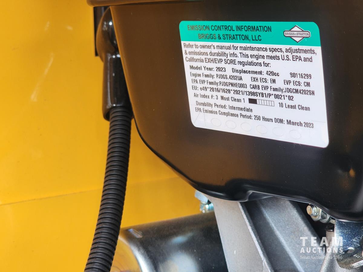 Open station, pilot controls, Briggs & Stratton XR Professional 420 CC gas engine, LED work lights, 14 inch Dig bucket, manual coupler, 1 auxiliary hydraulics, 2 Ft 7 inch stick, swing boom, backfill blade, thumb mount, 7 inch rubber tracks