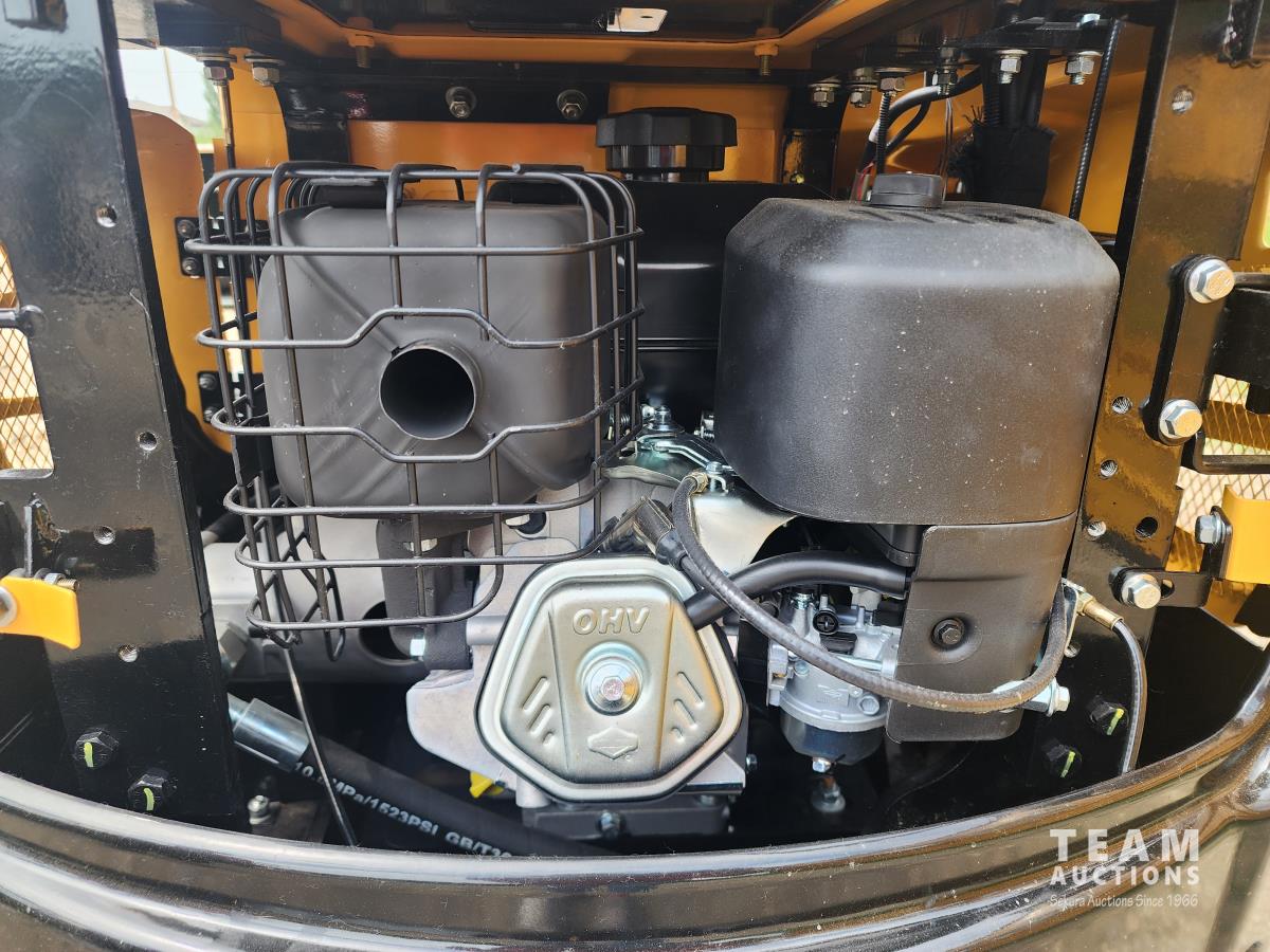 Open station, pilot controls, Briggs & Stratton XR Professional gas engine, LED work lights, 14 inch Dig bucket, manual coupler, 1 auxiliary hydraulics, 2 Ft 7 inch stick, swing boom, backfill blade, thumb mount, 7 inch rubber tracks