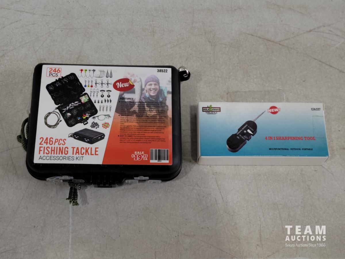 1759 246 Piece Fishing Tackle Accessory Kit and 4 in 1 Sharpening Tool (Unused)