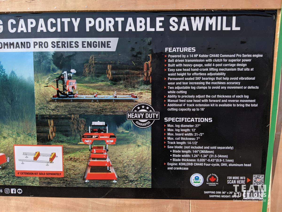 2056 TMG Industrial 27 Inch Portable Sawmill (Unused)