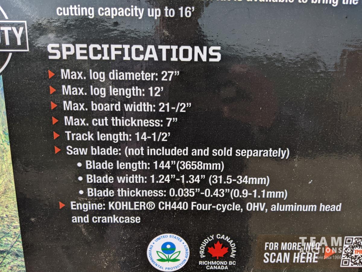 14 HP Kohler Gas Engine, 21 inch Board Width, 12 ft Log Length, 14-1/2 ft Track Bed