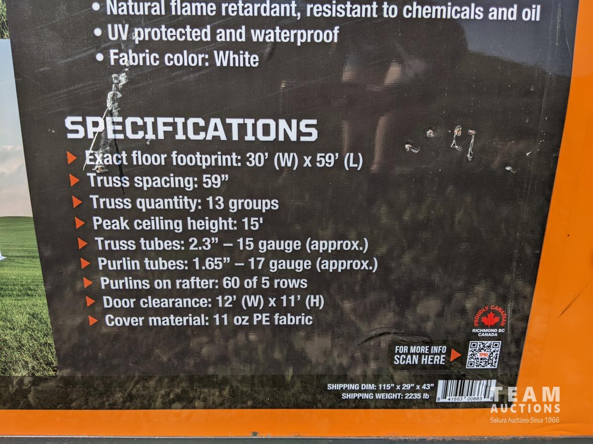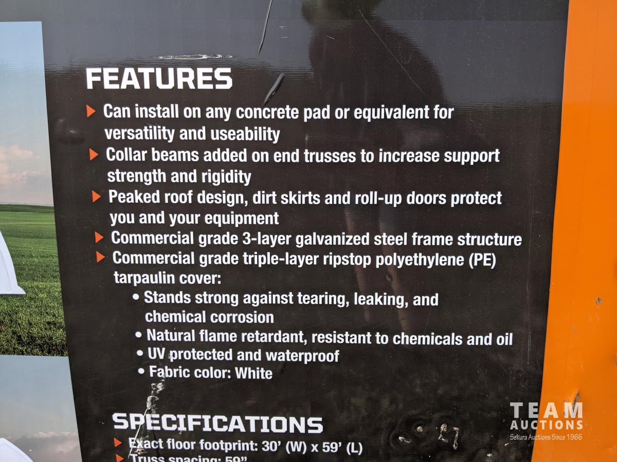 2064 TMG Industrial 30 Ft X 60 Ft Peak Ceiling Storage Shelter (Unused)