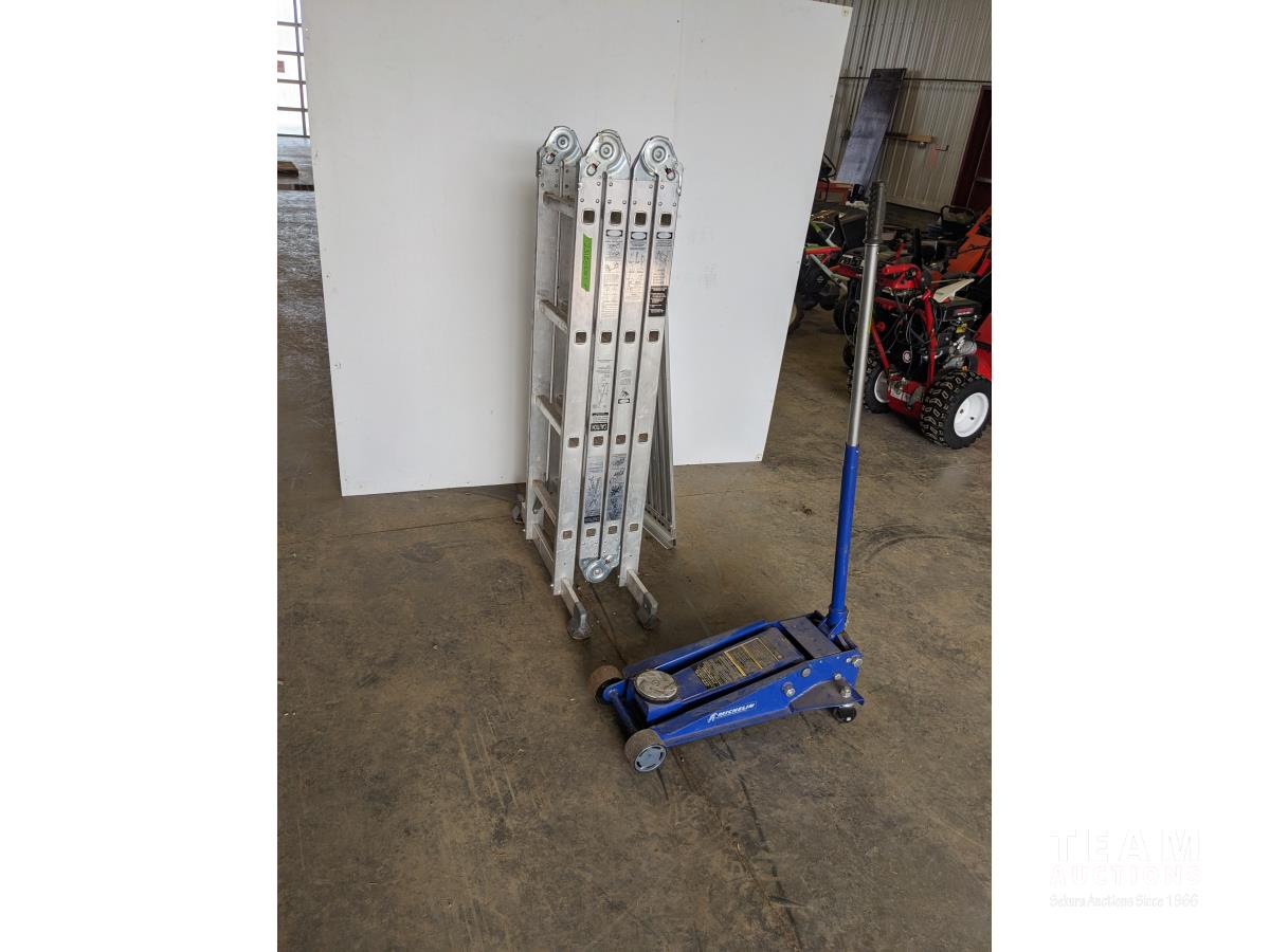 1079 3.5 Ton Michelin Floor Jack and Mastercraft Aluminum Platform Ladder