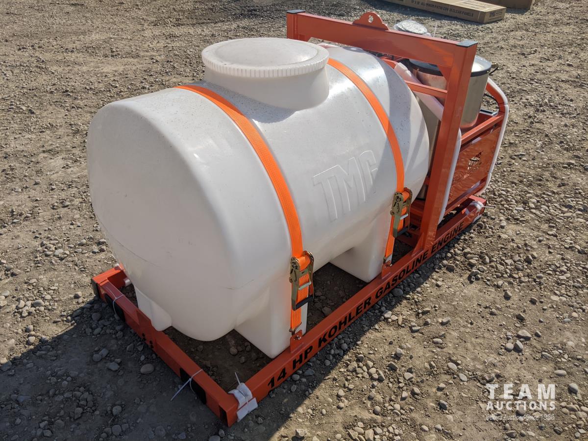 245 Gallon Water Tank, 14 HP Kohler Engine, Electric Start, Oil Fired, Triplex Plunger Pump, 33 ft High-Pressure Hose, Two Work Lights