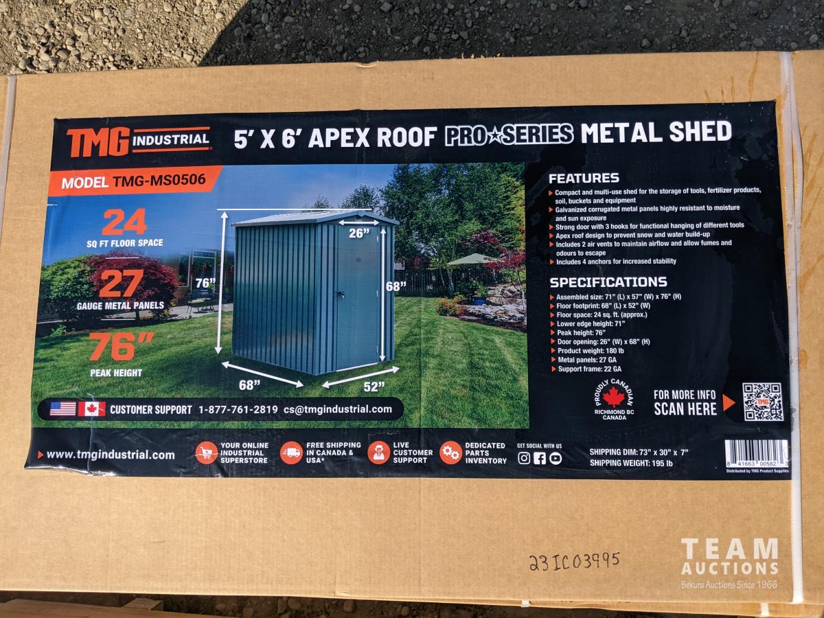 2034 TMG Industrial 5 X 6 Ft Apex Roof Metal Shed Pro Series (Unused)