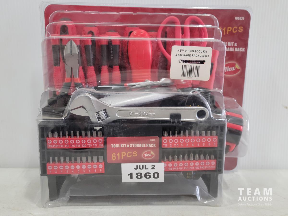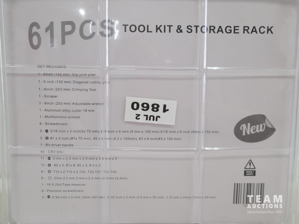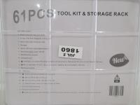 1674 61 Piece Tool Kit and Storage Rack (Unused)