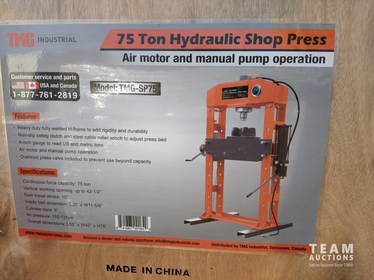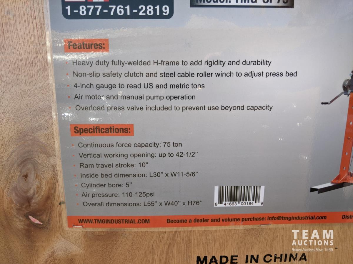 2023 TMG Industrial 75 Ton Capacity Hydraulic Shop Press (Unused)