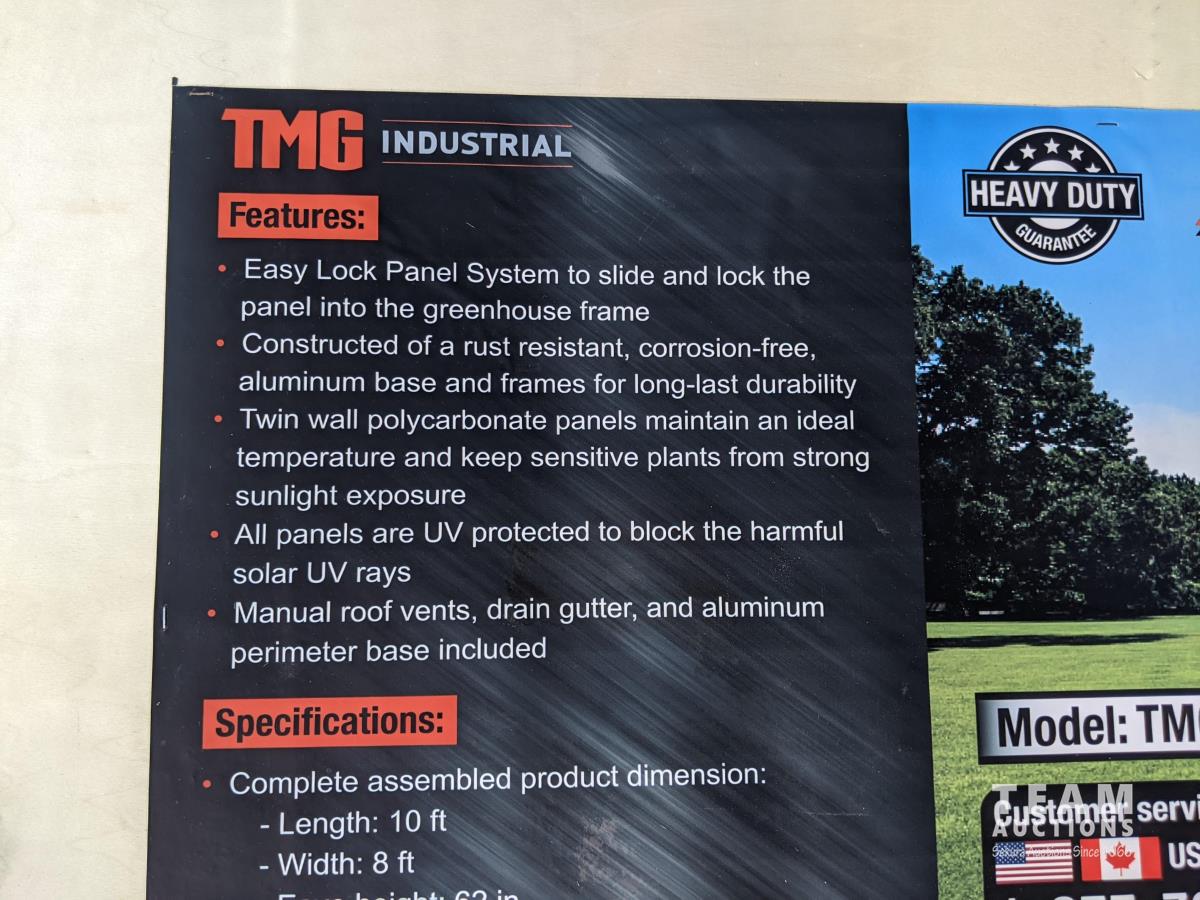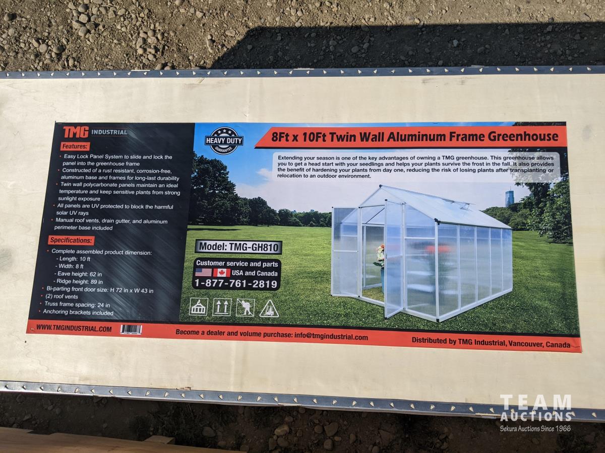 2036 TMG Industrial 8 Ft X 10 Ft Aluminum Frame Greenhouse (Unused)