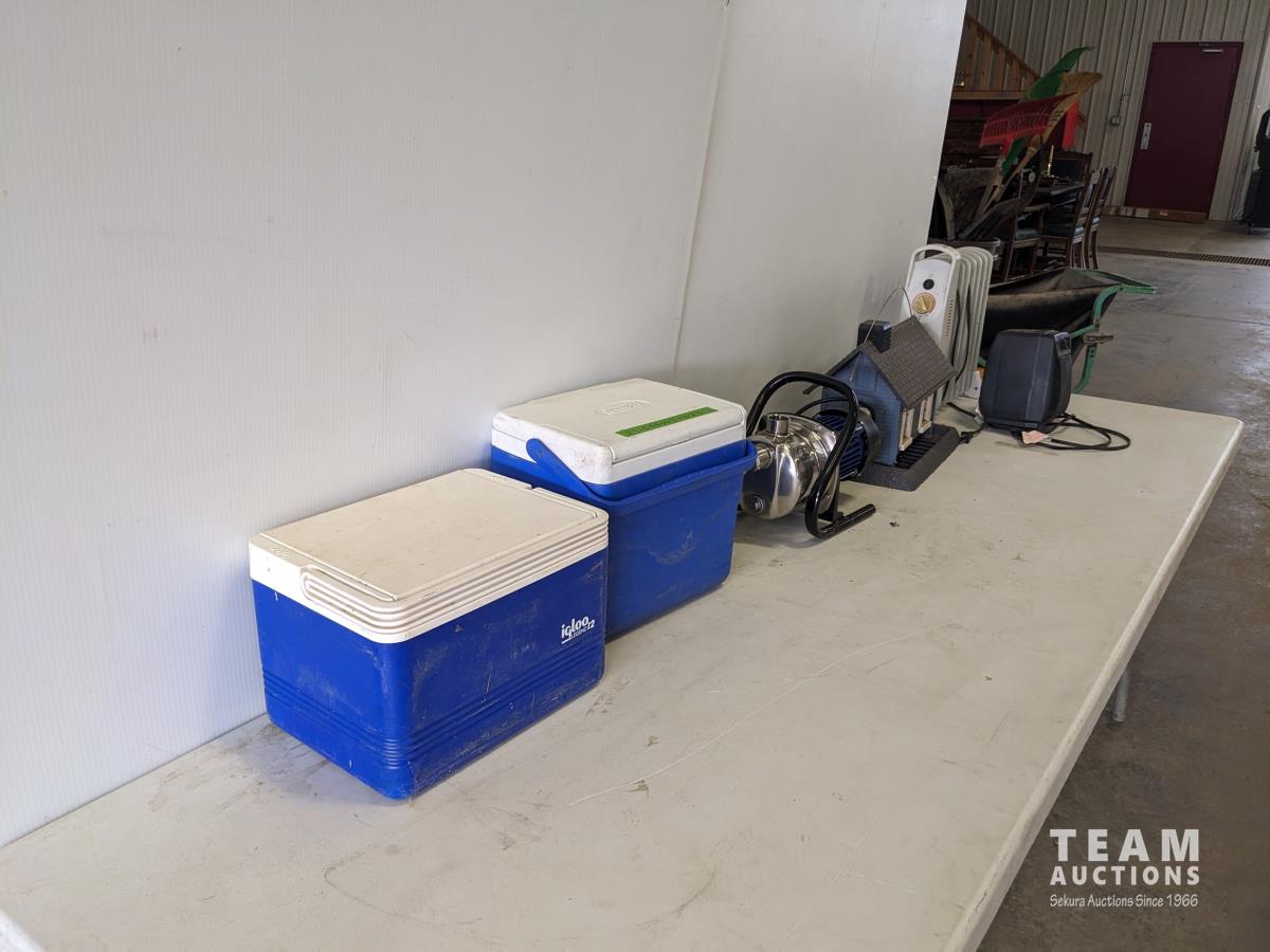 1054 Bird Feeder, Pressure Pump, (2) Electric Heaters and (2) Small Coolers