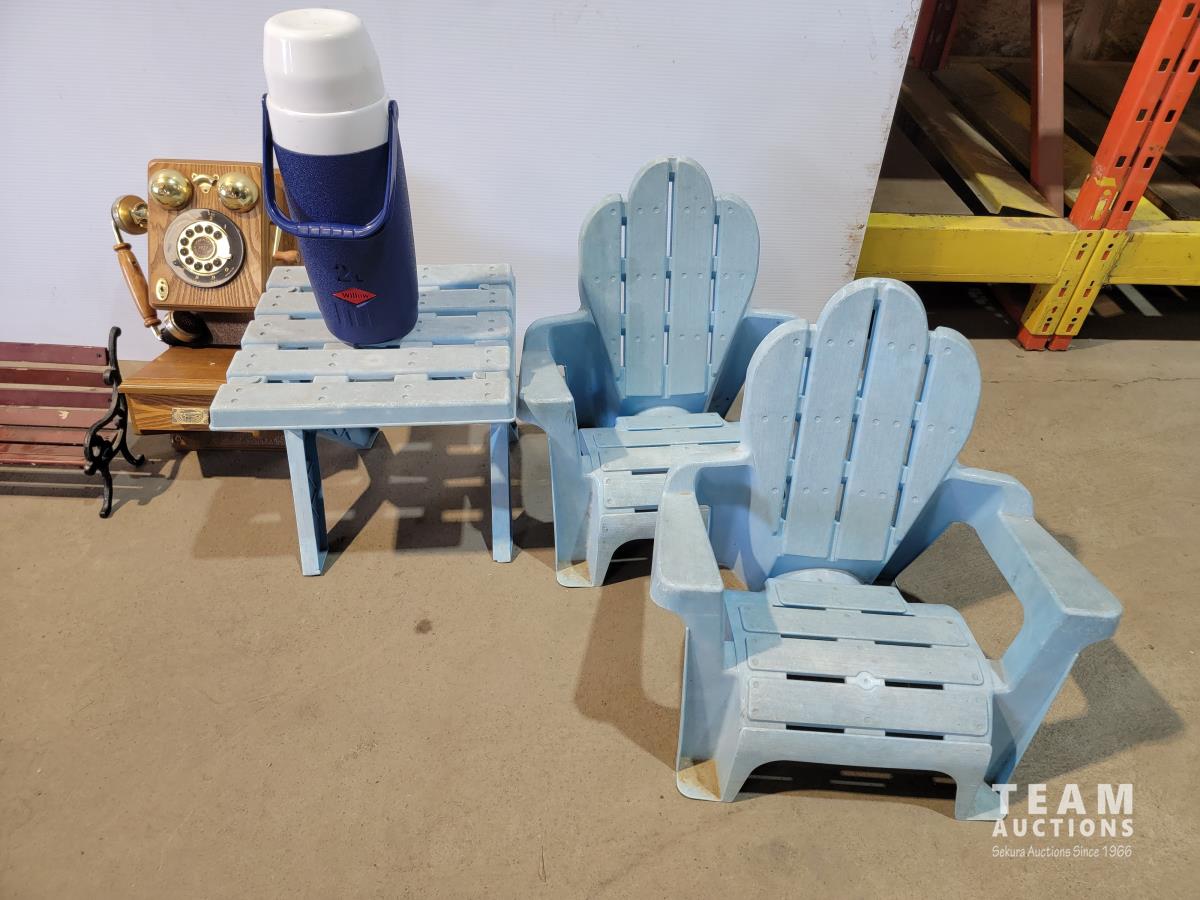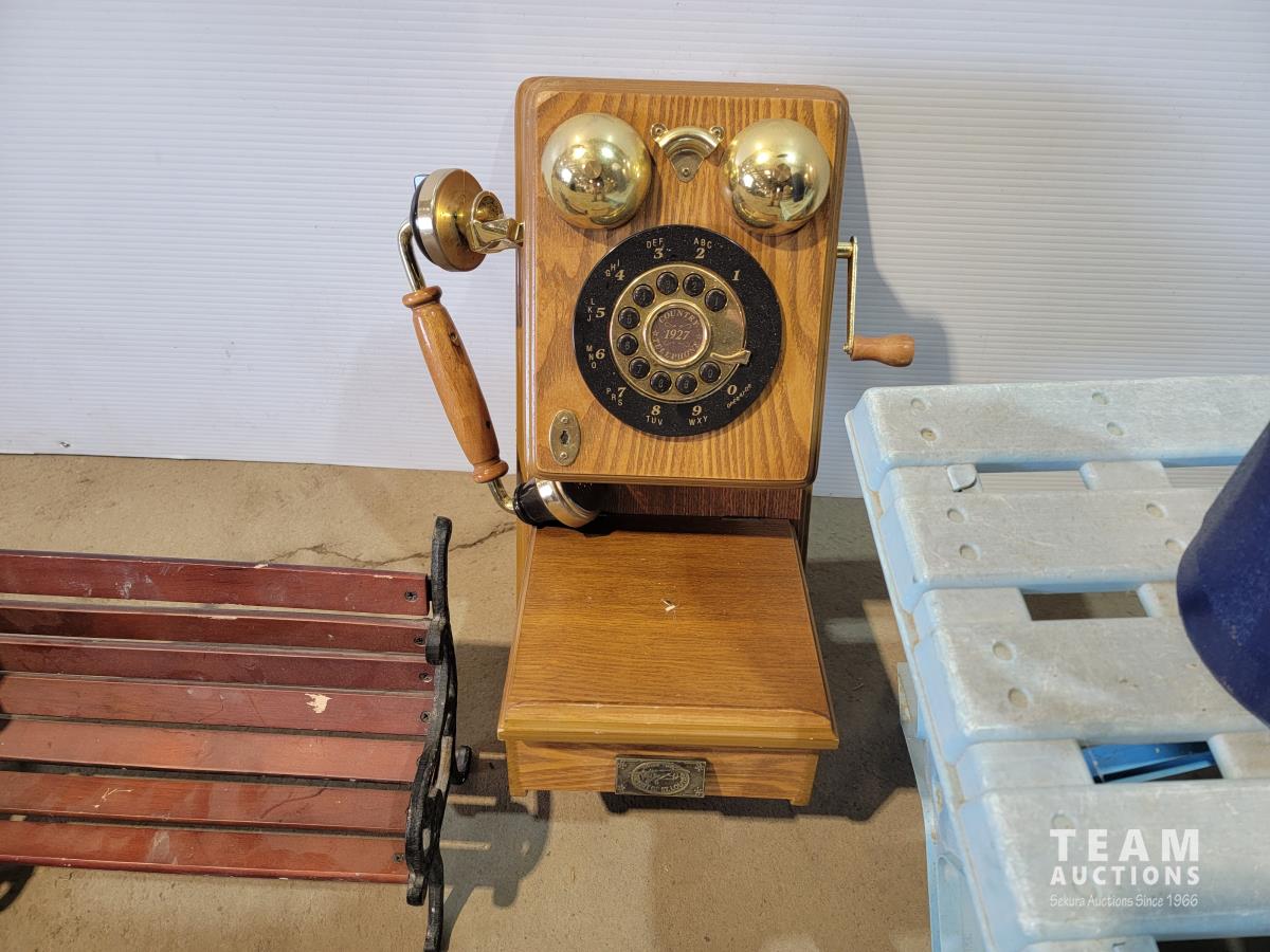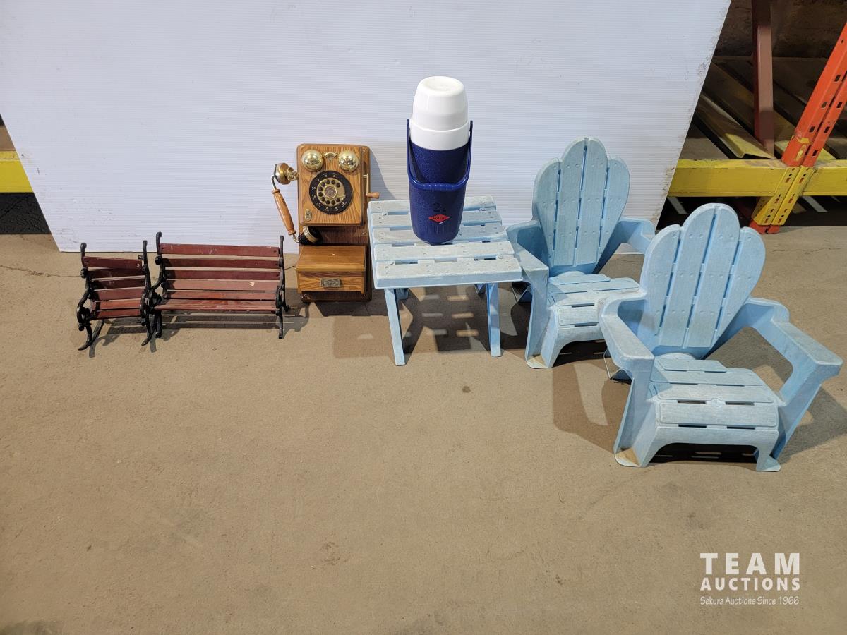 1459 Children's (2) Adirondack Chairs and Table, Vintage Telephone and Mini Bench